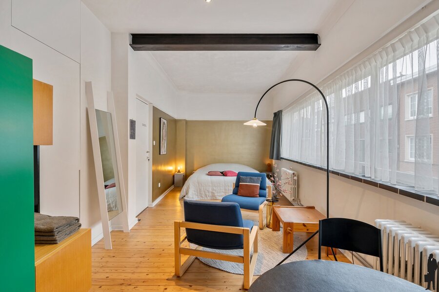 In de gegeerde Tentoonstellingswijk bevindt zich deze lichtrijke en uitzonderlijk ruime woning met een gevelbreedte van ca. 8 meter. Dankzij de royale volumes en grote raampartijen geniet u hier van een aangenaam ruimtegevoel en een open sfeer doorheen alle verdiepingen.