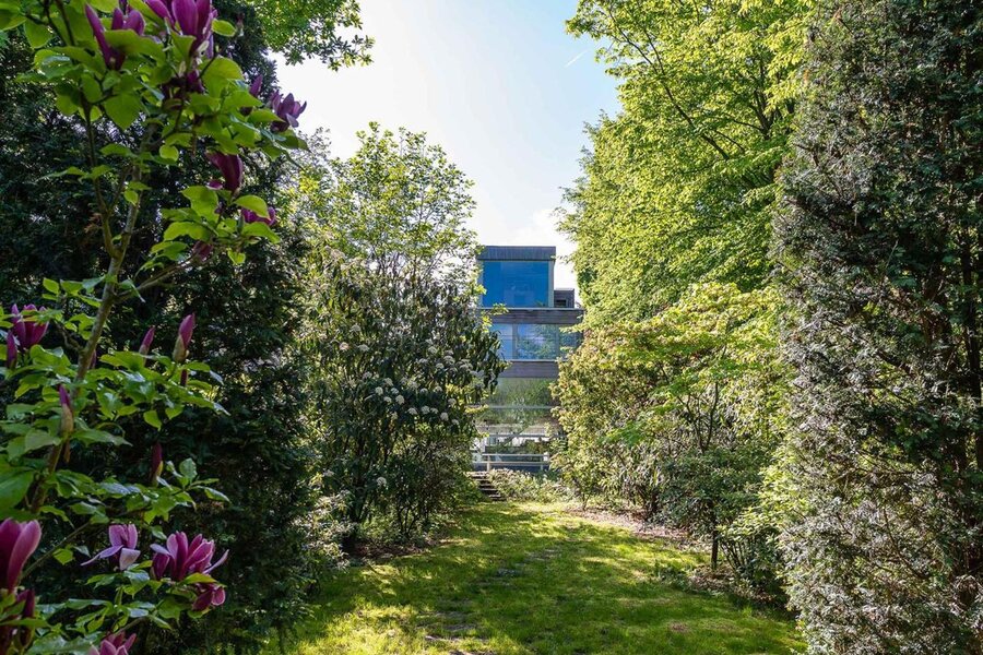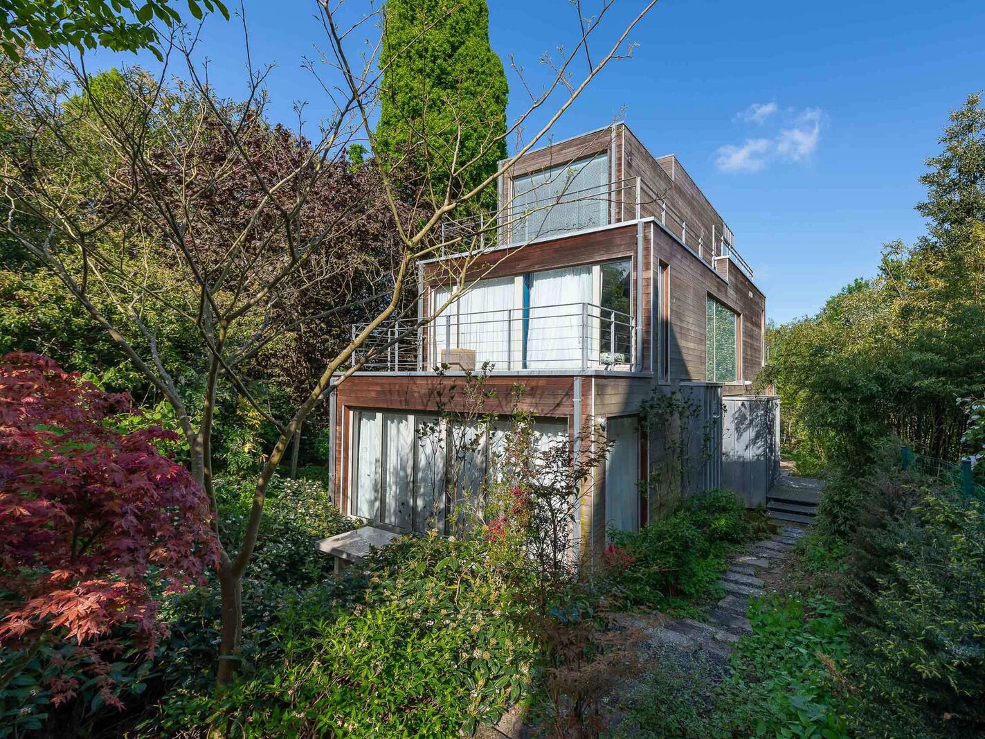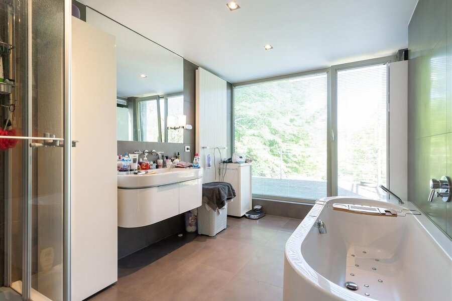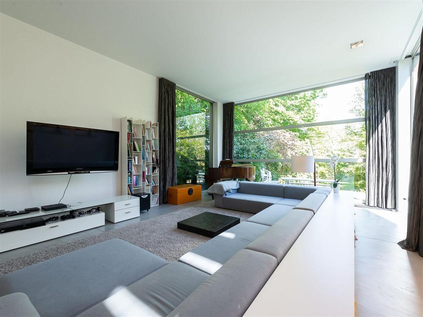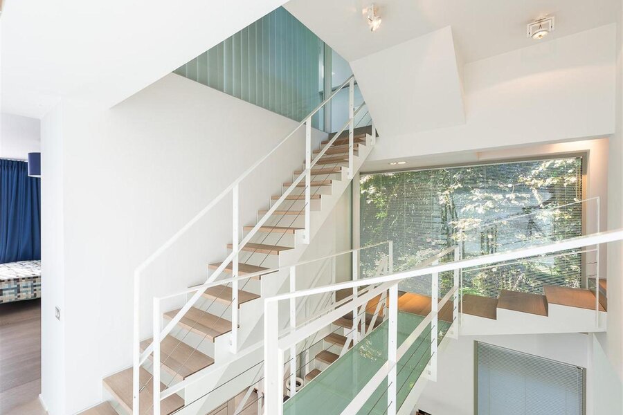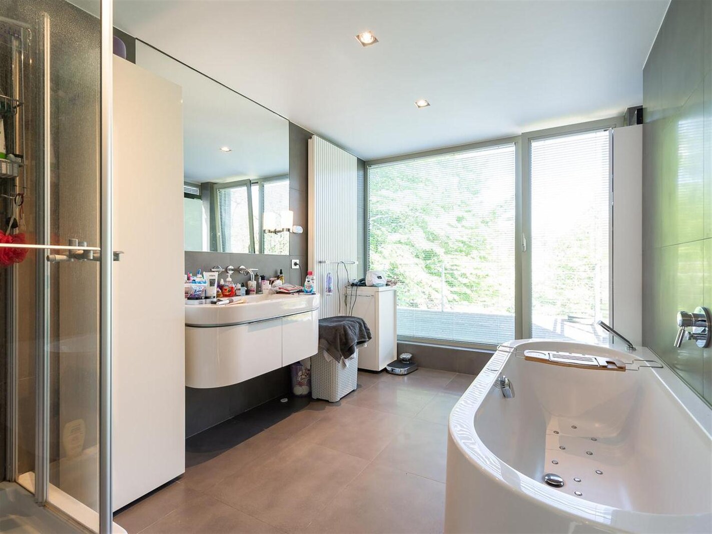 On the outskirts of Brussels, between the Bois du Wilder and the Scheutbos Park, this modern villa, designed by architect Jean-Paul Hermant and completed in 2006, offers a gross floor area of 312 m² and features three bedrooms on a plot of 25 ares. In addition to the main residence, there is an office space with a private entrance, ideal for a professional practice.