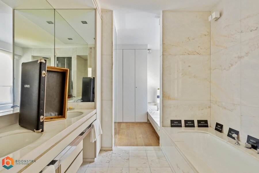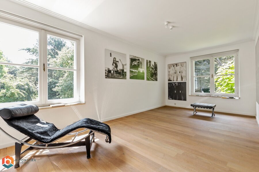 Op de eerste verdieping bevinden zich 4 royale slaapkamers waarvan de master bedroom beschikt over een inloopdressing en een badkamer met dubbele lavabo, ligbad, douche, toilet en bidet. De nachthal geeft daarnaast ook toegang tot een ruime berging en een badkamer met dubbele lavabo, bidet, toilet en douchebad. Tenslotte beschikt de woonst nog over een aparte vleugel met leefruimte, keuken, slaapkamer en badkamer met lavabo, toilet en ligbad. Deze kan perfect als volwaardig gastenverblijf, kangoeroewoning of au-pairruimte gebruikt worden. Op de zolderverdieping is het mogelijk om extra slaapkamers of hobbyruimtes bij te creëren.