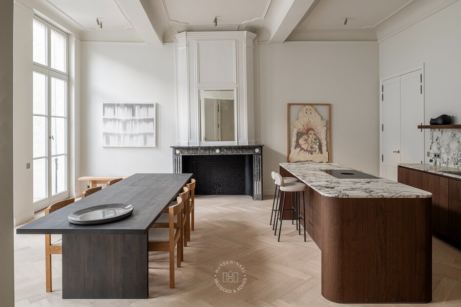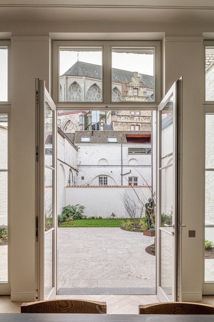 Vanuit de open keuken en woonkamer zijn er unieke zichten op de Sint-Baafskathedraal, een zeldzame en bijzonder waardevolle troef in het historische centrum van Gent.