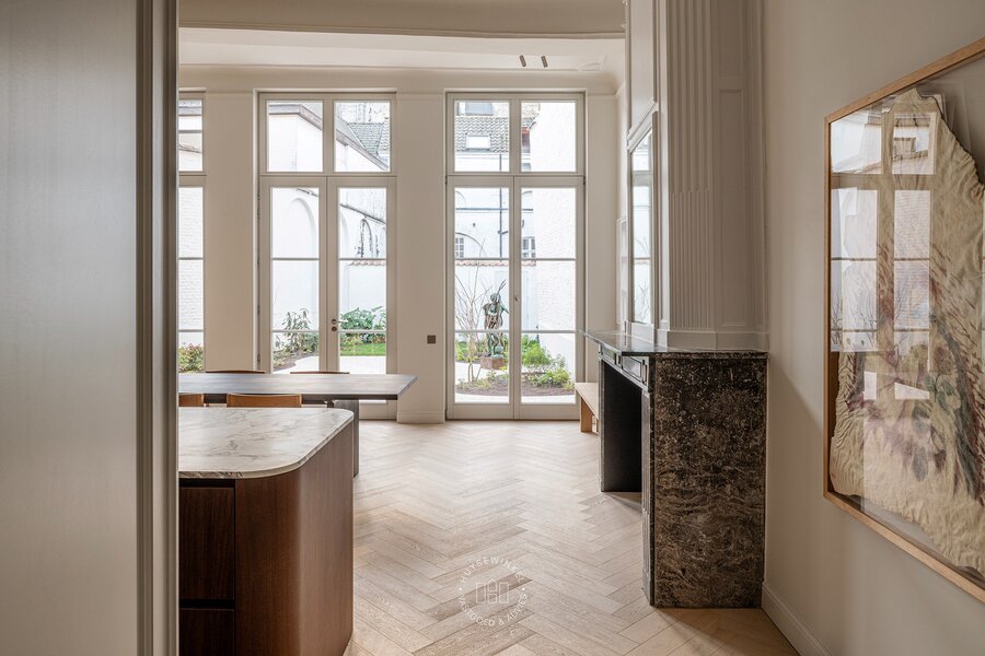 Het appartement beschikt over een royale en doordachte indeling en onderscheidt zich door een luxueuze afwerking met de beste materialen, prachtige volumes en een ruime zuidgerichte tuin van ca. 97 m². Deze groene buitenruimte vormt een zeldzame oase van stilte en zon in het hart van de stad.