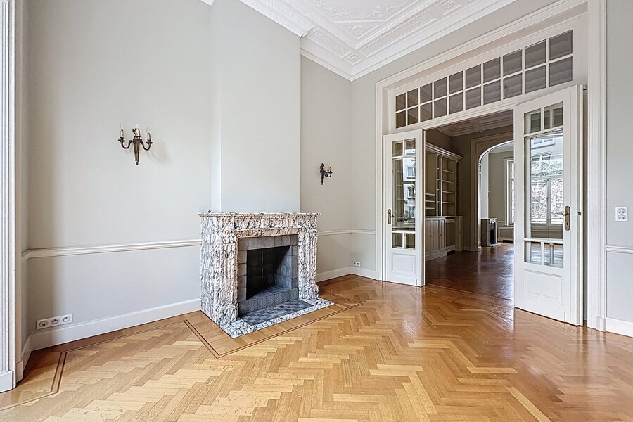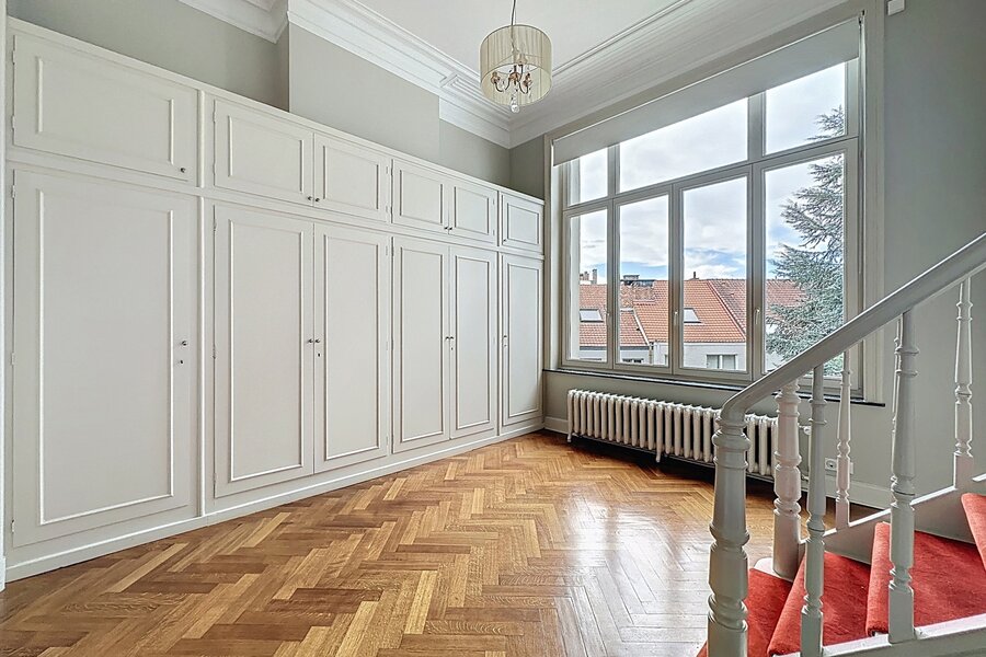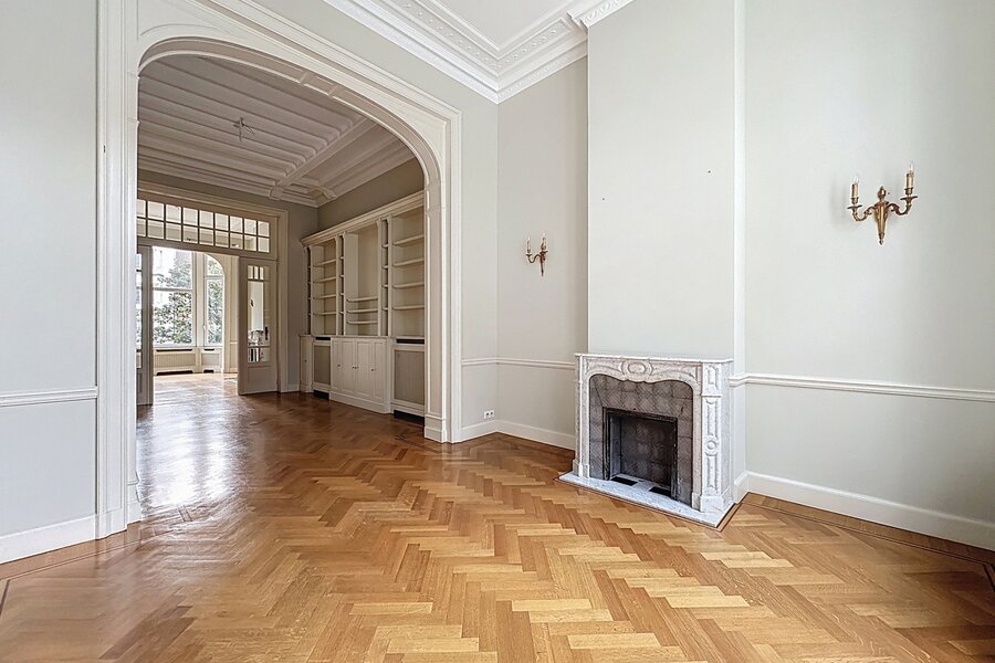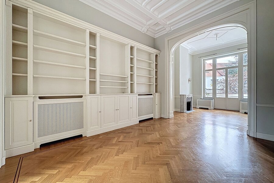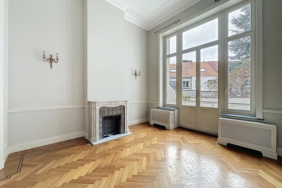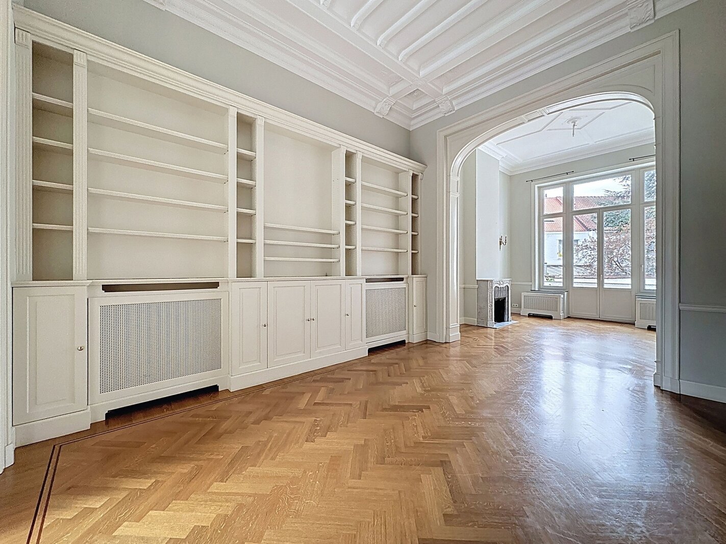 Ideally located on the prestigious Avenue Molière opposite Place Guy d'Arezzo, sublime mansion renovated in 2015 with a total surface area of ± 502 m². It consists of an entrance hall with a cloakroom and a water closet, a sumptuous living room (3 adjoining rooms of approximately 47.15 m²), a pretty dining room (± 15.50 m²), a fully equipped kitchen, 5 beautiful bedrooms (± 37 m², ± 18.15 m², ± 19.50 m², ± 18.70 m² and ± 43 m²) including the master suite with its dressing room area and its bathroom and shower, a pretty office (± 17.60 m²), 2 independent bathrooms, a shower room and an equipped laundry room. Large terraces and a pretty city garden. Cellar in the first basement, a garage and an outdoor parking space. Alarm, private elevator and quality materials. Charges: €150/month (fixed price for elevator, boiler, and alarm maintenance). PEB D-. Discover it as soon as possible!