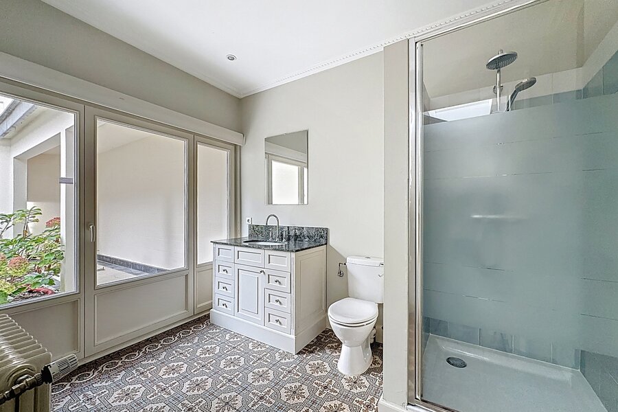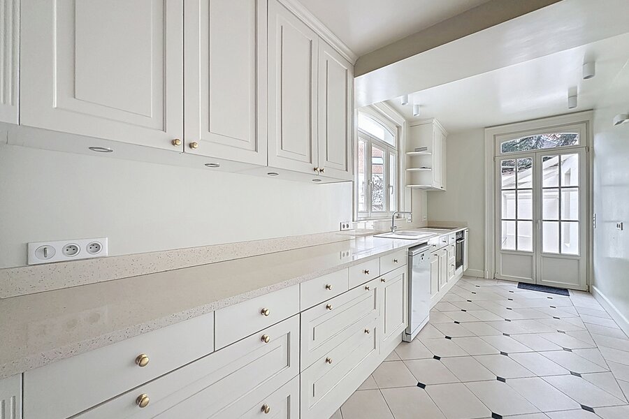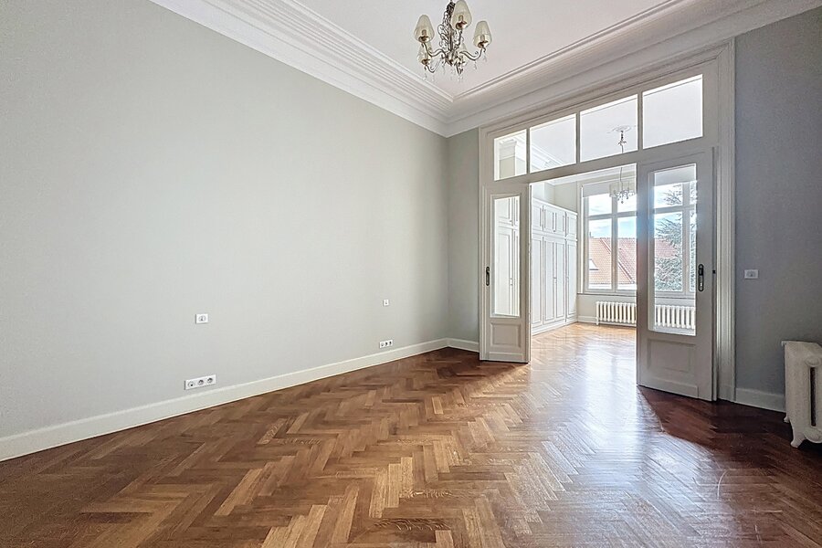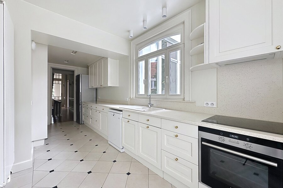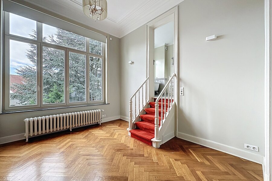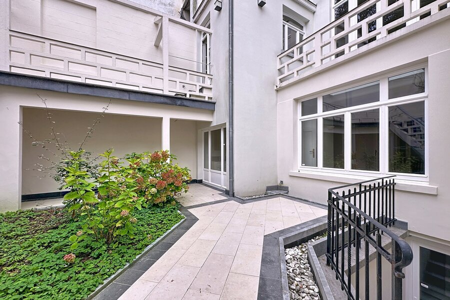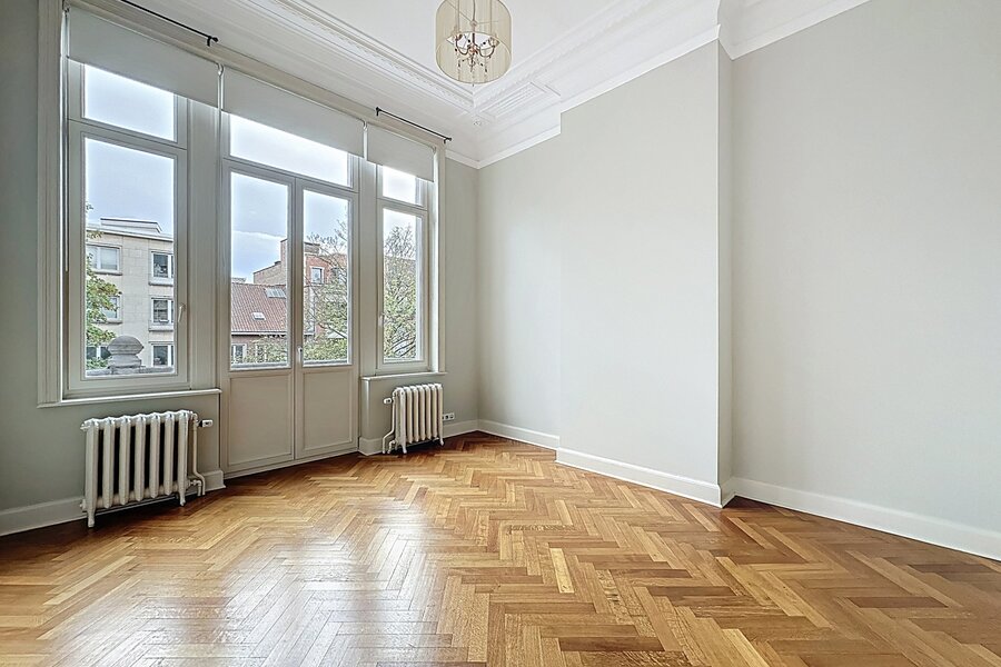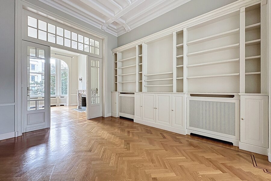 Ideally located on the prestigious Avenue Molière opposite Place Guy d'Arezzo, sublime mansion renovated in 2015 with a total surface area of ± 502 m². It consists of an entrance hall with a cloakroom and a water closet, a sumptuous living room (3 adjoining rooms of approximately 47.15 m²), a pretty dining room (± 15.50 m²), a fully equipped kitchen, 5 beautiful bedrooms (± 37 m², ± 18.15 m², ± 19.50 m², ± 18.70 m² and ± 43 m²) including the master suite with its dressing room area and its bathroom and shower, a pretty office (± 17.60 m²), 2 independent bathrooms, a shower room and an equipped laundry room. Large terraces and a pretty city garden. Cellar in the first basement, a garage and an outdoor parking space. Alarm, private elevator and quality materials. Charges: €150/month (fixed price for elevator, boiler, and alarm maintenance). PEB D-. Discover it as soon as possible!
