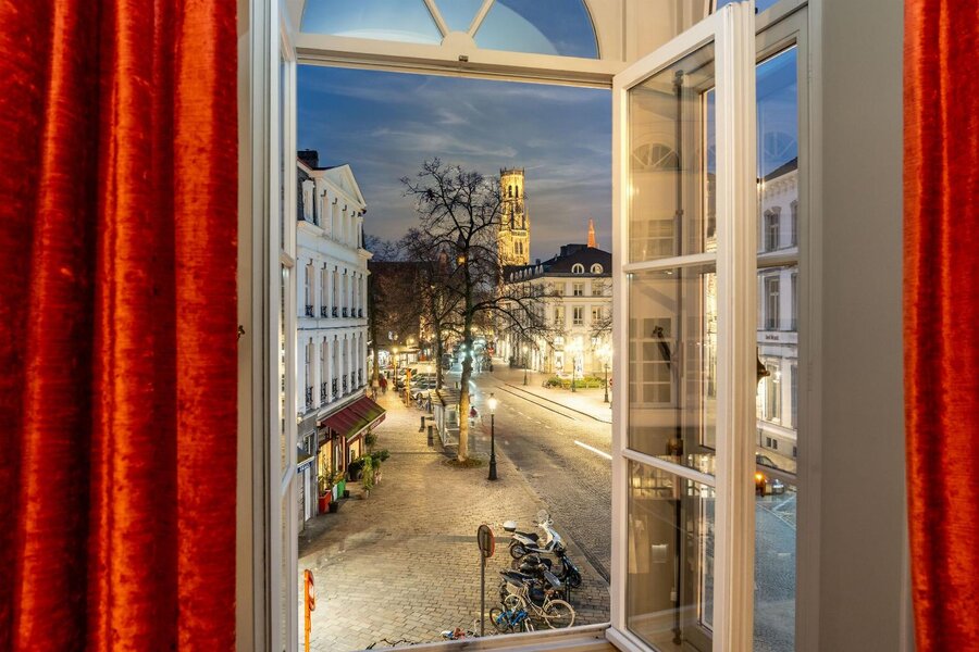 Midden in het historische hart van Brugge bevindt zich dit markante hoekgebouw dat onmiddellijk indruk maakt door zijn ligging, schaal en uitstraling. Gelegen vlak bij de Grote Markt geniet het pand van een zeldzaam open zicht op het Belfort een perspectief dat zich doorheen het volledige gebouw ontvouwt.