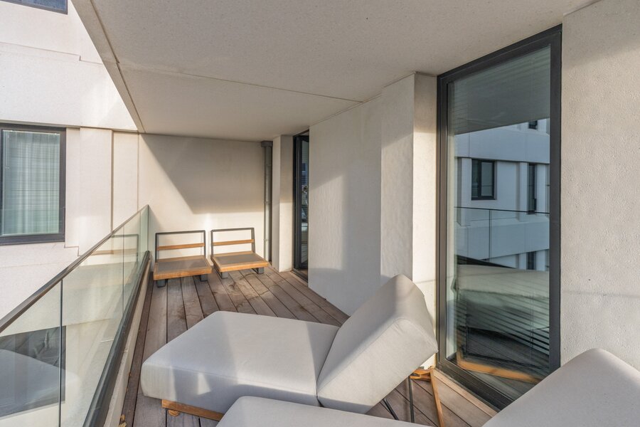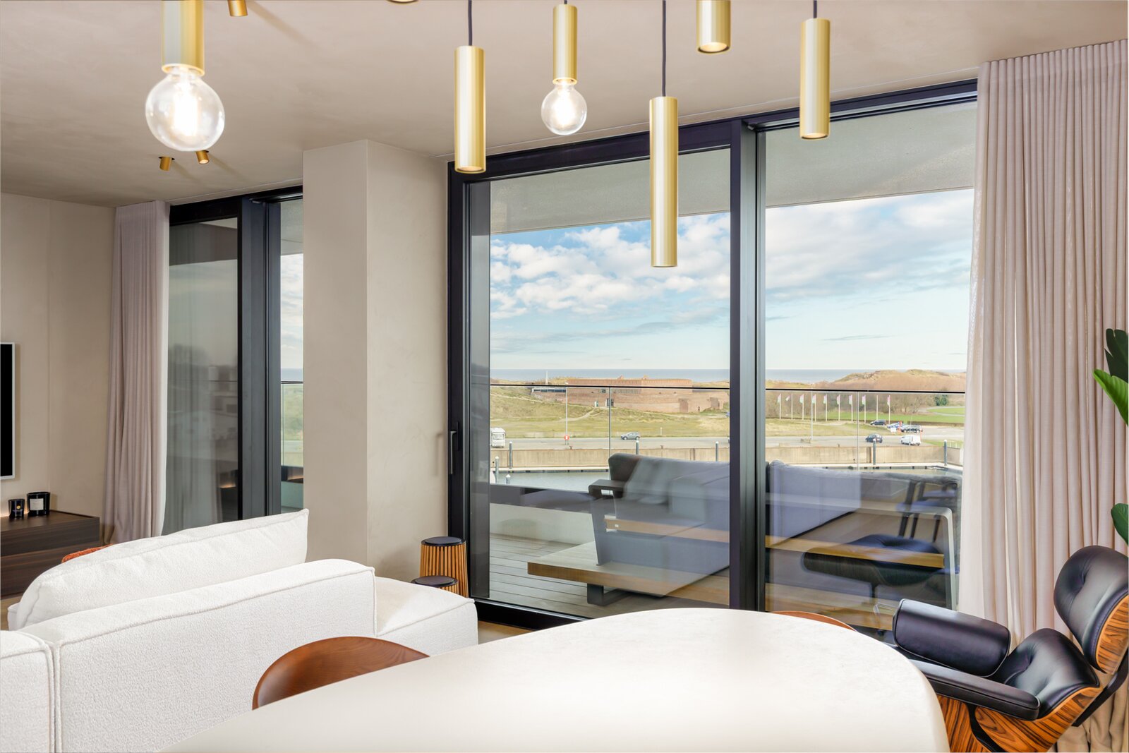 Dit exclusieve appartement is gelegen op de 4de verdieping van residentie Trinity, de nieuwste en meest prestigieuze toren op de site Oosteroever. U geniet hier van een adembenemend frontaal uitzicht op de zee, de duinen en het iconische Fort Napoleon. Het gebouw, een meesterlijk ontwerp van Binst Architects, fungeert als visueel hoekbaken dankzij zijn helder gelaagde architectuur en strakke, tijdloze lijnen.