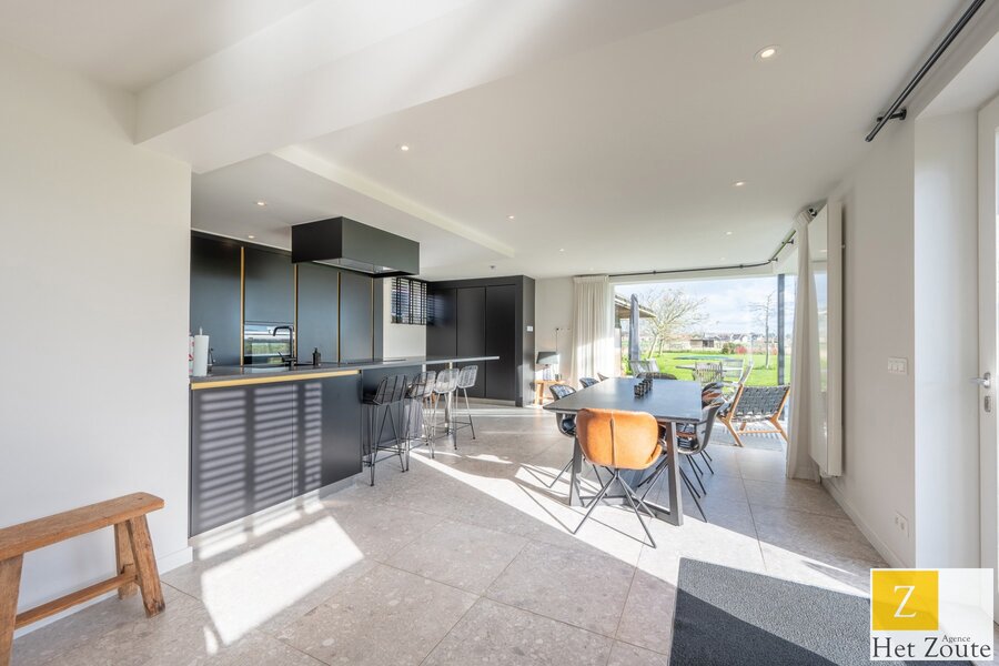 De open, moderne keuken vormt het hart van de woning en is uitgerust met een centraal kookeiland en hoogwaardige inbouwapparatuur. Verder beschikt de woning over een inpandige garage met ruimte voor één wagen en extra bergruimte.
