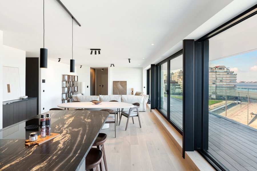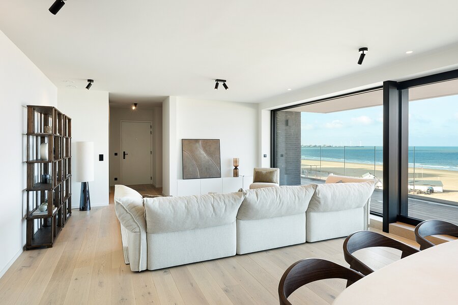 Exceptional luxury apartment with high-end finishes, offering frontal sea views and a rare façade width of approximately 12 metres, located in the prestigious new-build residence “Duinresidence”, directly beside the Royal Belgian Sailing Club of Duinbergen.