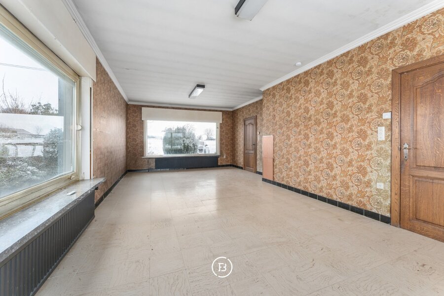 De eigendom omvat een bestaande woning, een ruime loods (+/- 450m²) en een serre. De huidige bebouwing kan volledig worden gerenoveerd met behoud van de bestaande volumes, of mits naleving van de geldende stedenbouwkundige voorschriften plaatsmaken voor een nieuw, uniek woonproject op maat.
