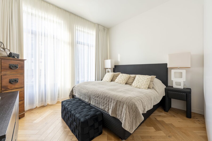 The flat is located on the first floor of a small-scale residence on the trendy Eilandje.
