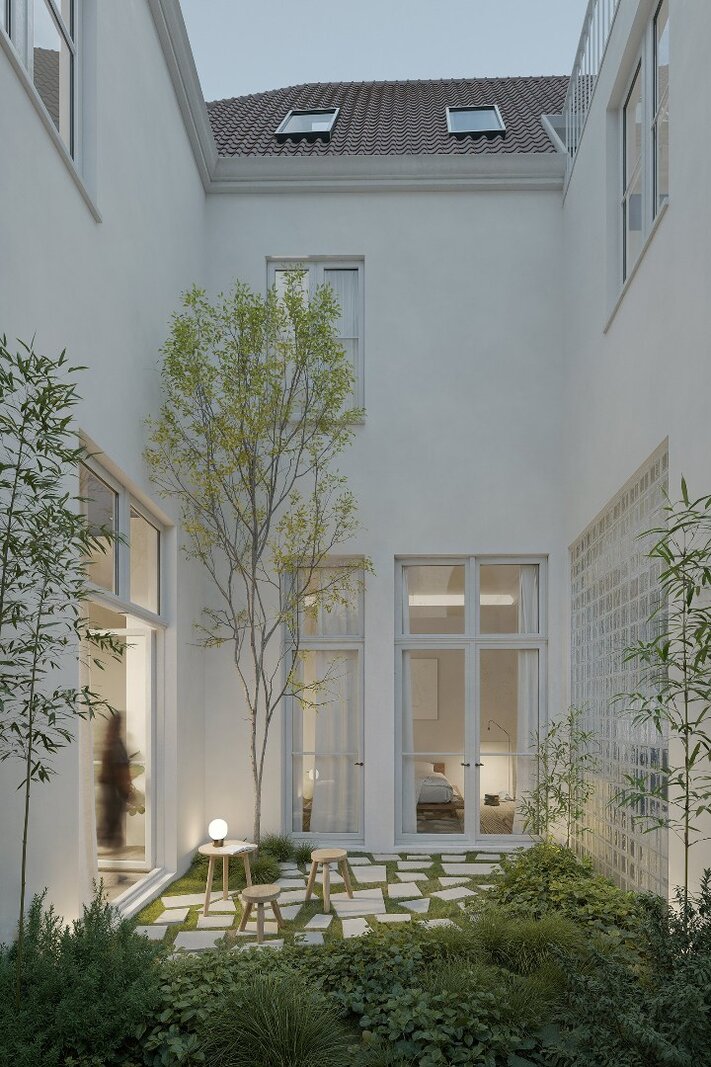 Achter de gevel van een klassevolle herenwoning met erfgoedwaarde vindt u vier exclusieve stadsappartementen, per verdieping één.