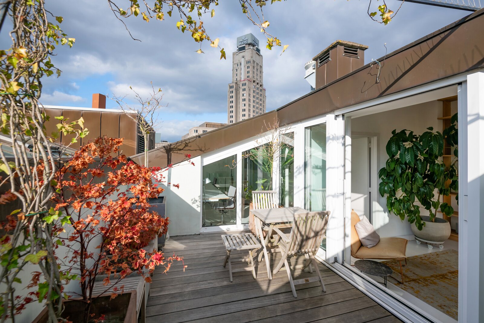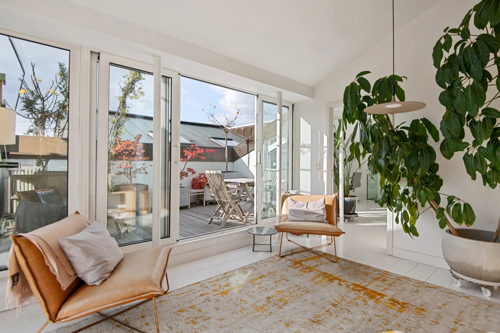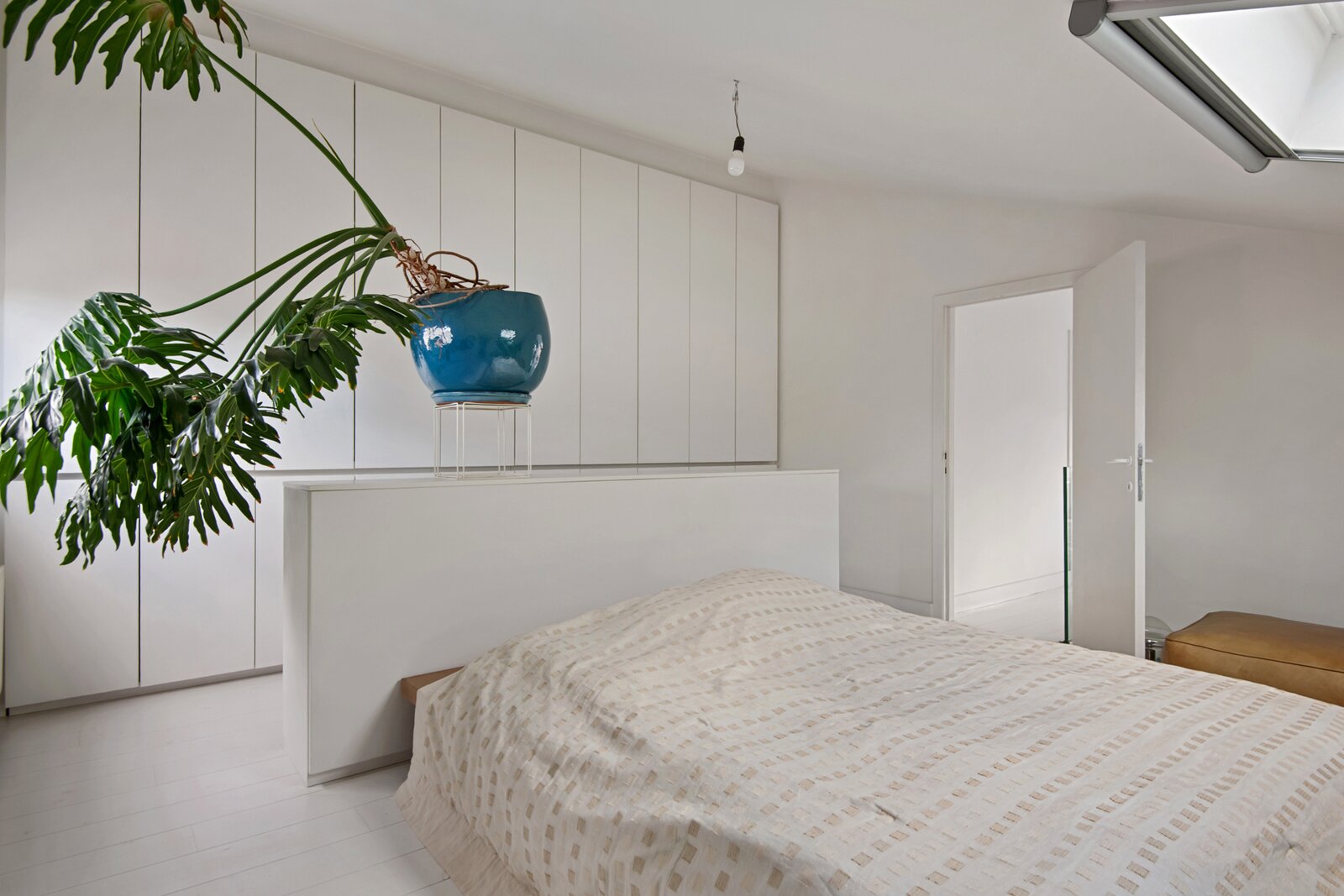 This excellently finished duplex penthouse on the fourth floor offers exceptional living comfort with a thoughtful layout and abundant natural light. On the first floor, there is a spacious living area with an open kitchen, equipped with all comforts, a first bedroom with an adjoining bathroom, and a separate guest toilet. Thanks to the large windows, the entire floor enjoys a pleasant natural light. On the second floor, there is an open lounge area and a bright office space that provides direct access to a sunny roof terrace of approximately 15 m². Furthermore, there is a second bedroom with a built-in dressing room and a spacious adjoining bathroom. This penthouse stands out for its high-quality finish, ample natural light, practical layout, and the pleasant roof terrace with open views. In short, an ideal living space for those who love space, style, and comfort. The underground parking space in the complex is mandatory to rent for €150 per month (bringing the total rent to €2,200 including parking). The monthly fixed costs amount to €290, while electricity, gas, water, and internet are to be connected by the tenant themselves.