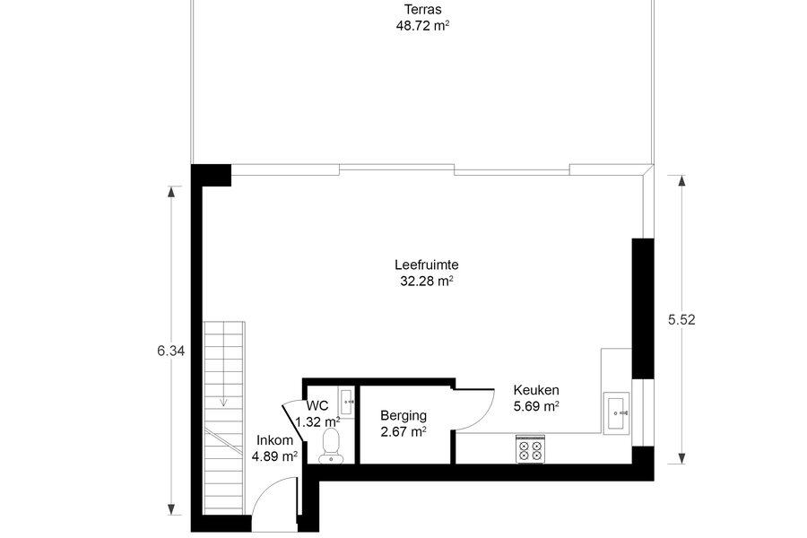- Twee terrassen (48,72 m² en 13,47 m²) voor buitenleven