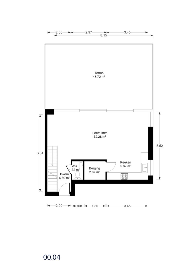 - Ruime woonkamer (32,28 m²) met veel lichtinval en toegang tot het terras