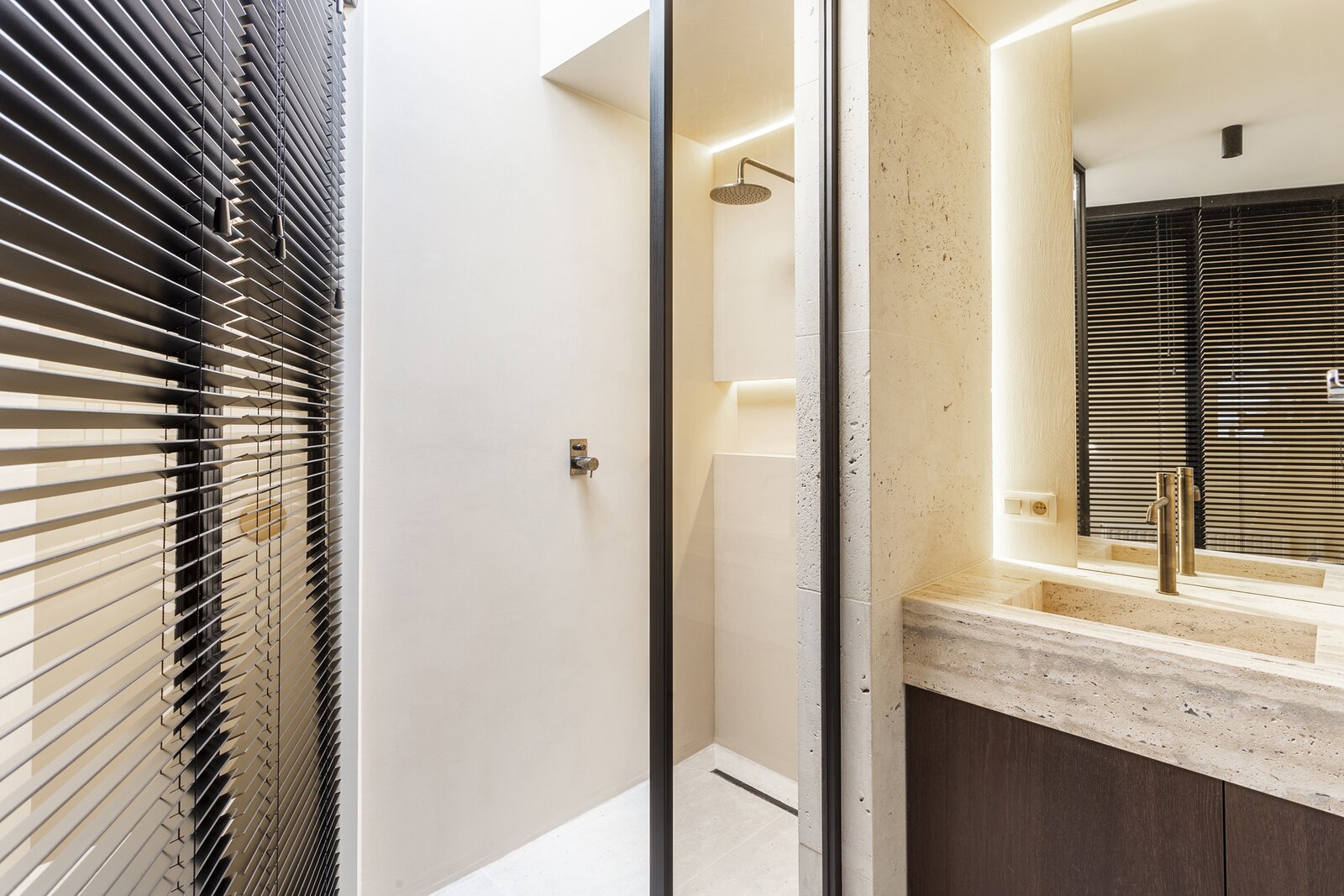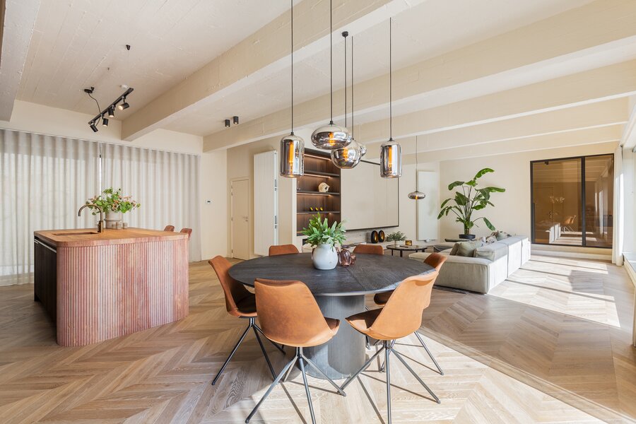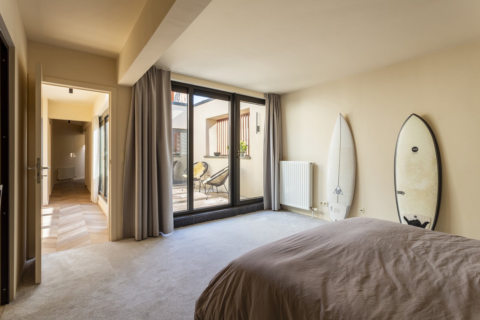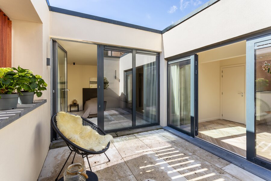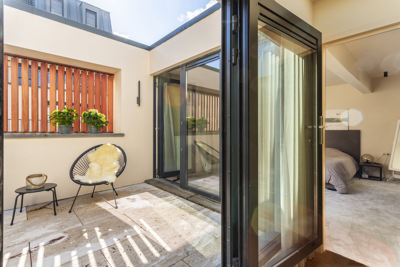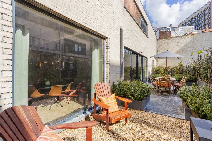 In een zijstraat van de Antwerpse Marnixplaats, temidden het bruisende Antwerpse Zuid, bevindt zich dit uitzonderlijk ingerichte duplexappartement/achterhuis. De gekozen materialen in combinatie met de zonnige terrassen en grote ruimtes maken van deze woning een échte parel.