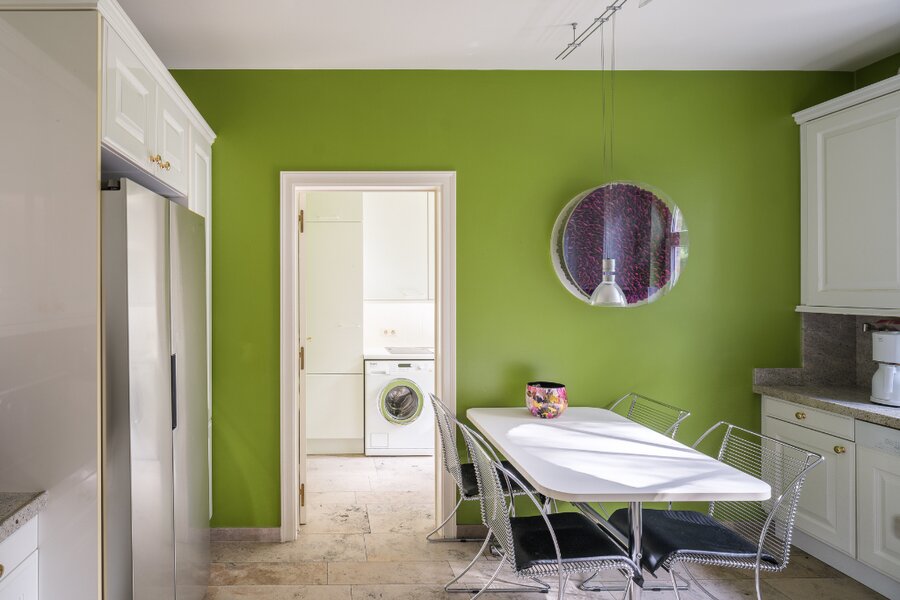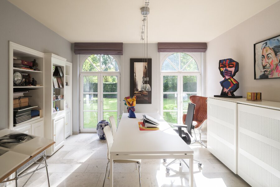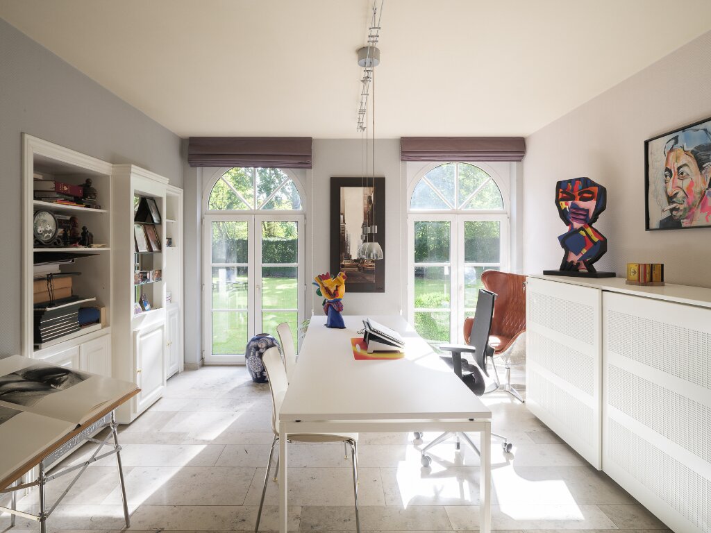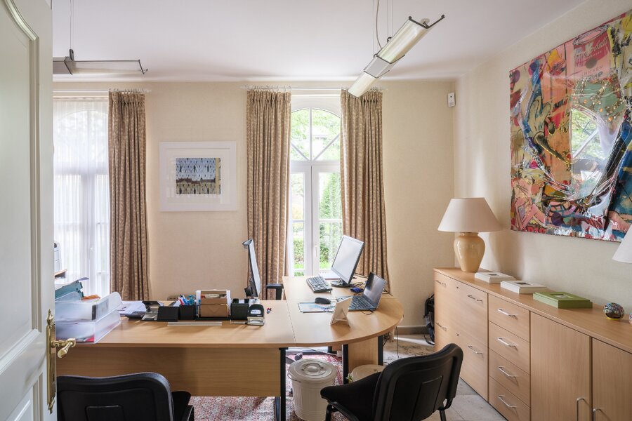 Dankzij de tweede toegang en de verschillende polyvalente ruimtes op het gelijkvloers, zoals twee praktijkruimtes, een ontvangstkamer en een afzonderlijk toilet, leent deze woning zich perfect voor een combinatie van wonen en werken. Dit pand werd in 1991 opgeleverd als een eengezinswoning met dokterspraktijk.