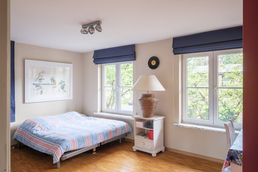 De eerste verdieping telt vier volwaardige slaapkamers, twee badkamers en een dressing. Via een vaste trap bereik je de ruime zolderverdieping, die nog extra mogelijkheden biedt als extra slaapkamer, sportruimte of opbergplaats.