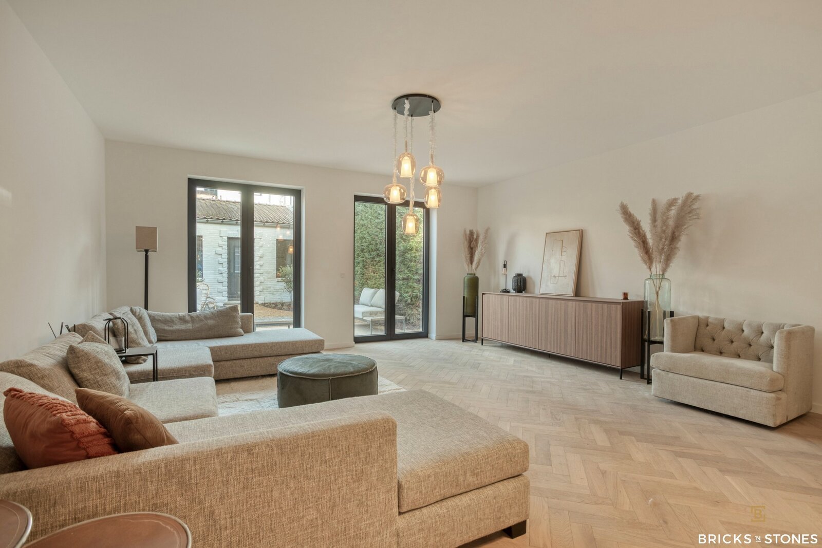 De woning werd ontworpen met oog voor licht, ruimte en functionaliteit. Op het gelijkvloers betreedt u de woning via de inkomhal die uitgeeft op een uitzonderlijk grote en lichtrijke leefruimte. De woonkamer sluit naadloos aan op de eetkamer én volledig geïnstalleerde keuken en vormt een aangename leefomgeving voor zowel dagelijks gebruik als gezellige momenten met familie en vrienden. Vanuit de leefruimte is er directe toegang tot de tuin, die een fijne buitenruimte biedt om te ontspannen. Extra troef : achteraan het perceel bevindt zich een handig en groot bijgebouw, ideaal voor vrij beroep, hobby ruimte of extra logeermogelijkehid.