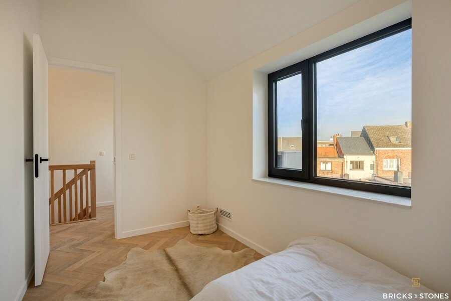 Op de eerste verdieping bevinden zich twee volwaardige slaapkamers, een stijlvolle badkamer en een praktische wasberging. De tweede verdieping biedt nog eens twee ruime slaapkamers en een tweede badkamer met doucheruimte, waardoor de woning perfect geschikt is voor grotere gezinnen, samengestelde gezinnen of wie extra ruimte wenst voor een bureau of hobbyruimte.
