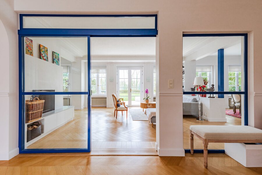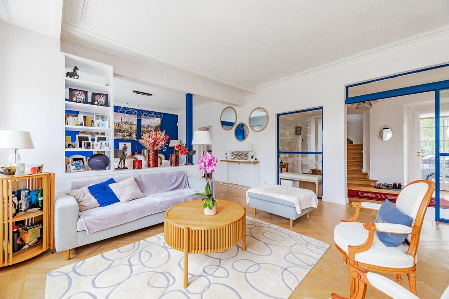 The bright reception rooms open onto a beautiful terrace and a south-facing garden, offering a harmonious living environment bathed in light.
