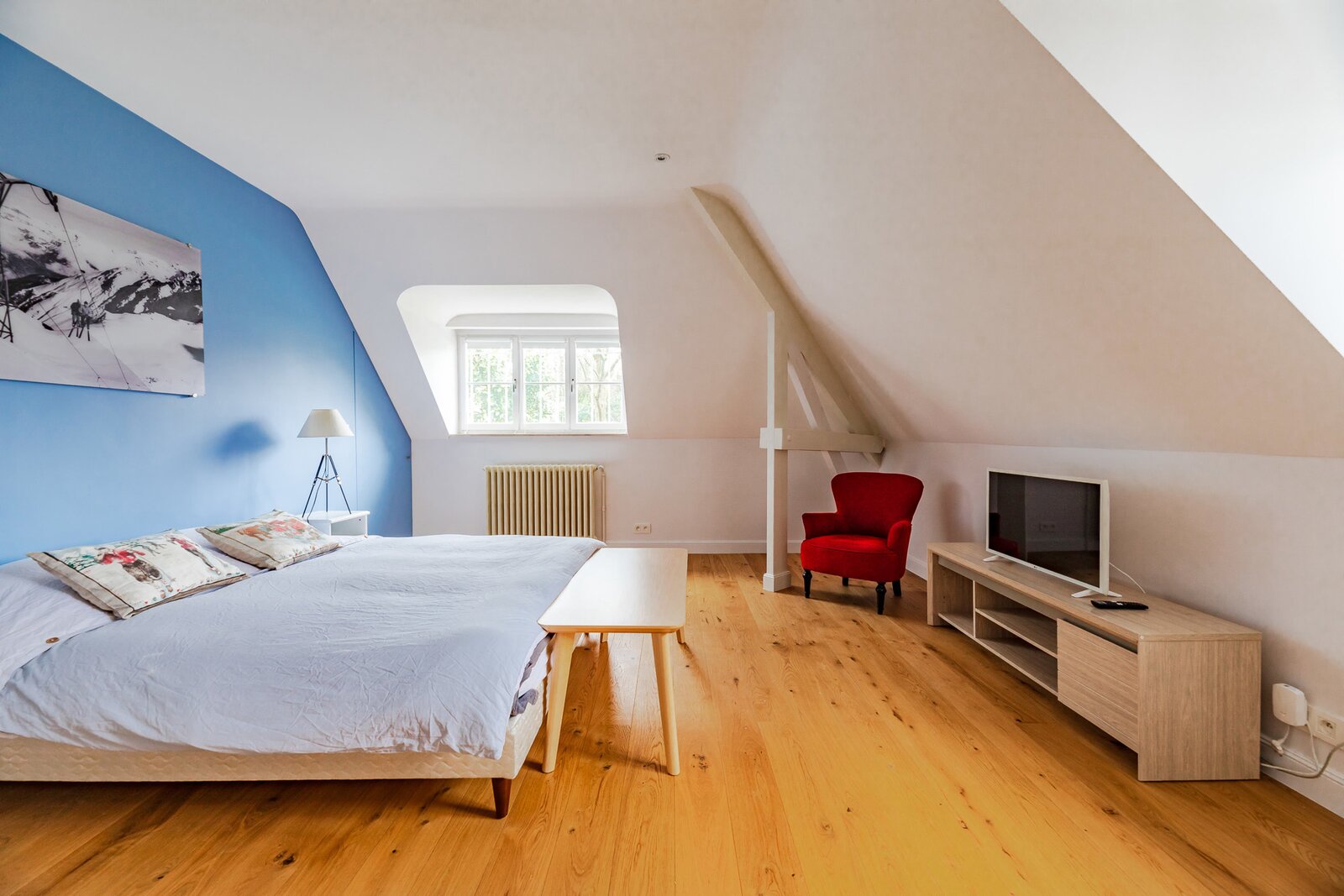 Close to the Royal Leopold Club, in an exceptional green setting, this spacious family villa enjoys a privileged location at the end of a driveway, offering absolute tranquillity and total privacy.