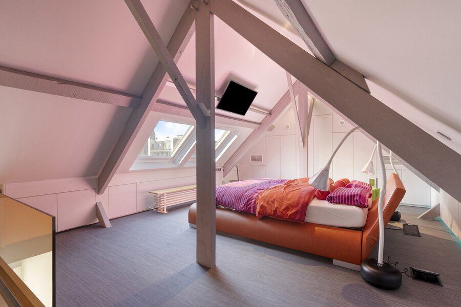 3de verdieping: Slaapkamer met douche en toilet.