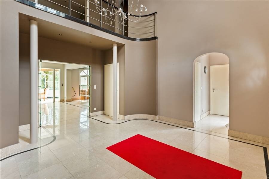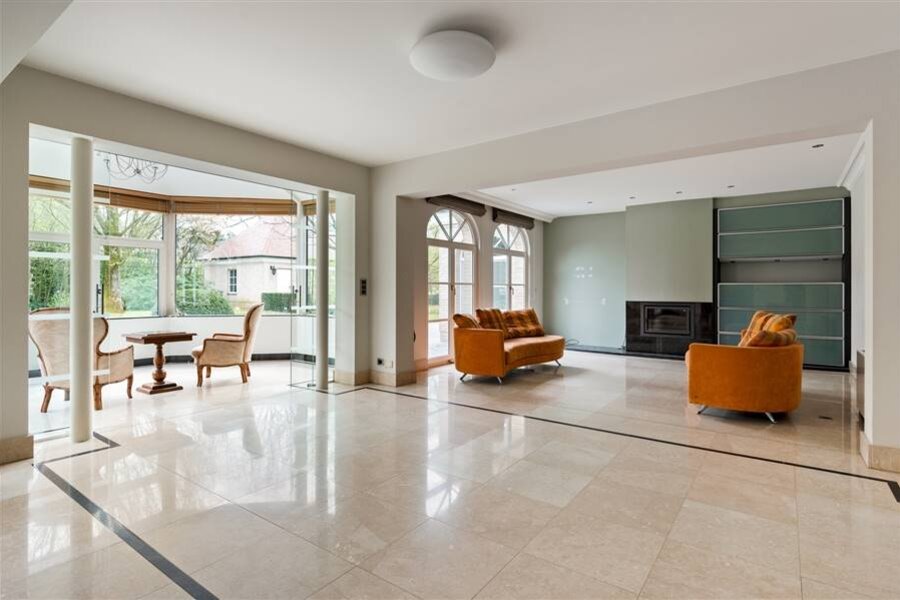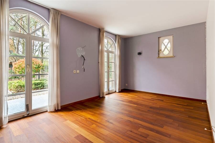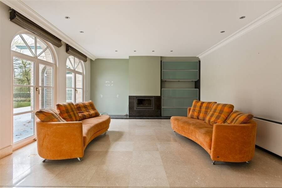 Upon entering the house you are welcomed in a spacious entrance hall with checkroom and guest toilet. Through an elegant double glass door you enter the bright living space of no less than 71 m², where large windows offer a beautiful view of the south-facing garden.