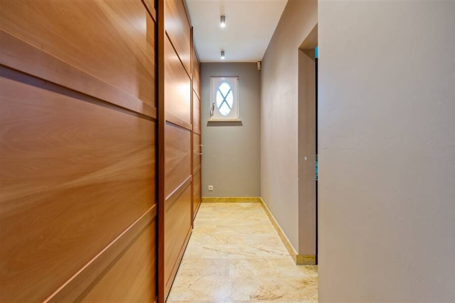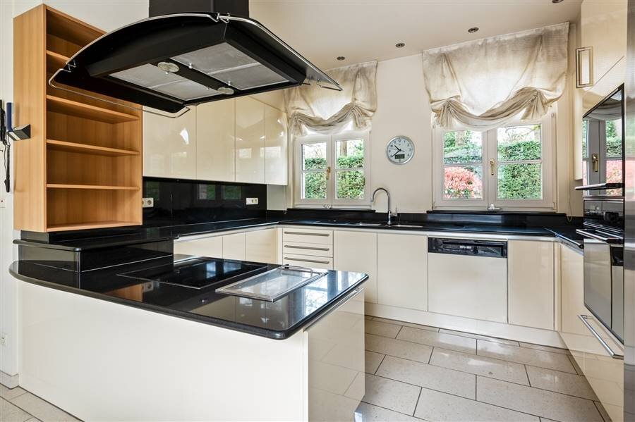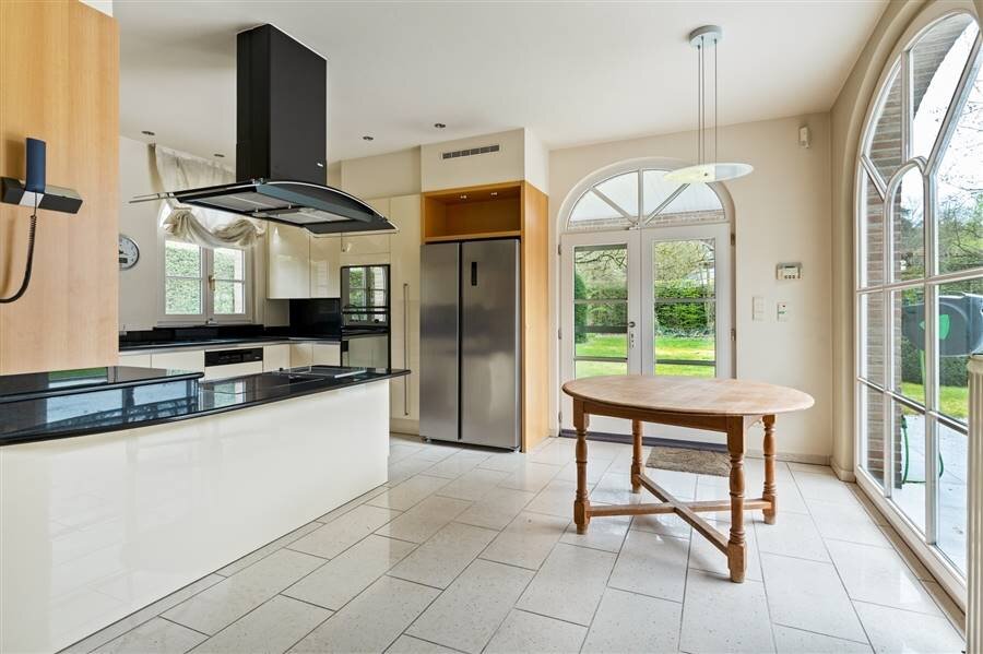 The fully installed kitchen is equipped with all comforts, including an American fridge, oven, dishwasher, hob and built-in deep fryer. Adjacent you will find a practical cool storage room and a spacious laundry room with custom cabinets.