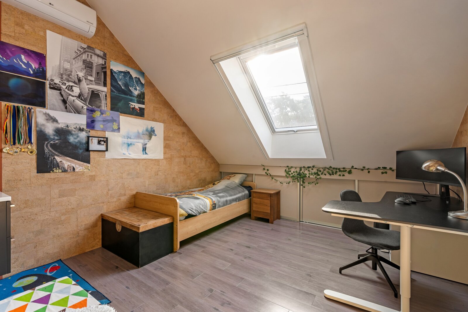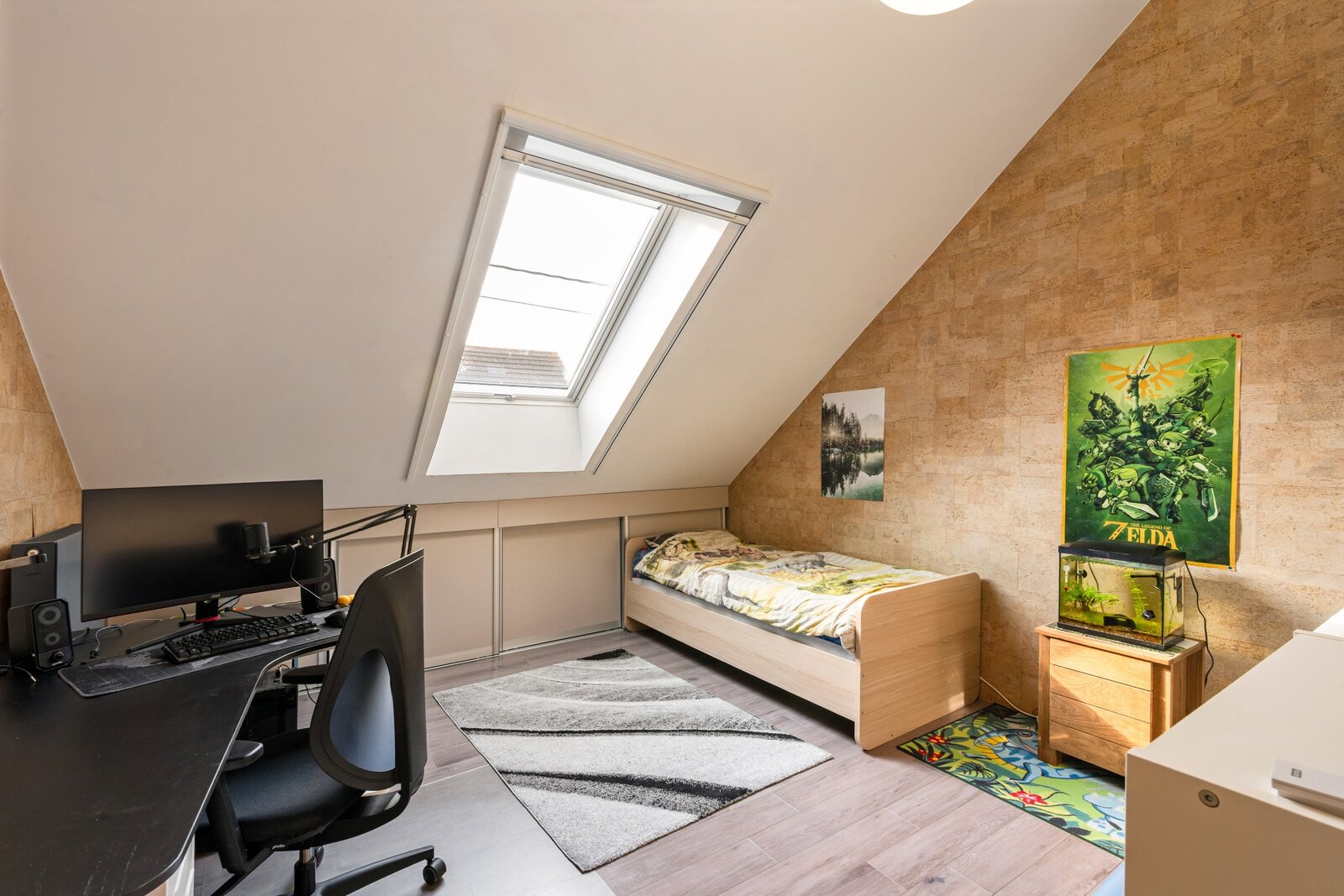 Op de verdieping is er een ruime overloop die momenteel is ingericht als multifunctionele televisieruimte. Verder zijn er 4 ruime slaapkamers, 2 toiletten en badkamer met wastafel en douche. Een van de slaapkamers is momenteel ingericht als fitness, hier is ook de technische ruimte terug te vinden.