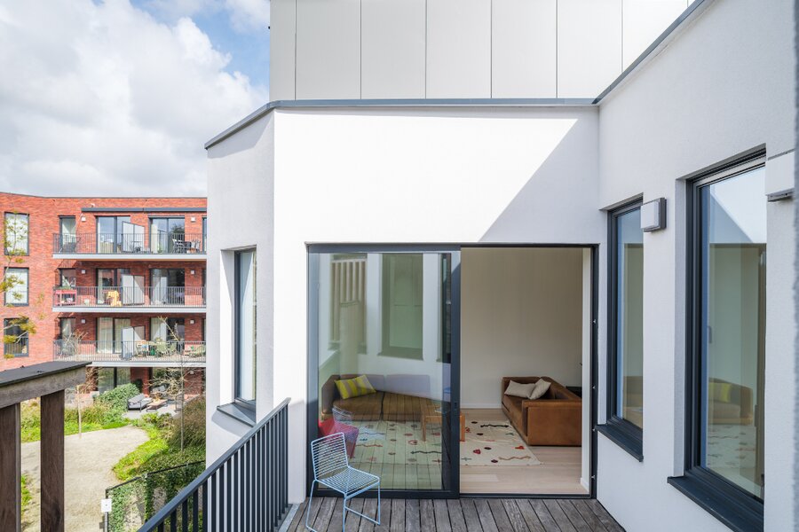 Uniek townhouse-appartement met o.m. 4 slaapkamers, 3 badkamer en een ruim terras.