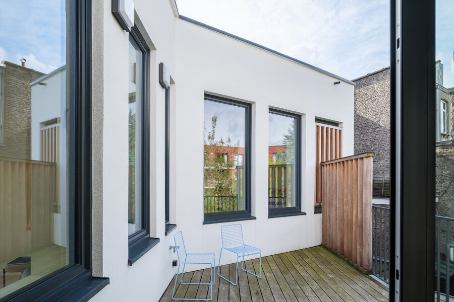 Omgeving Gent-Sint-Pieters. Uniek townhouse-appartement met terras en een perfecte symbiose tussen authenticiteit en hedendaags comfort.