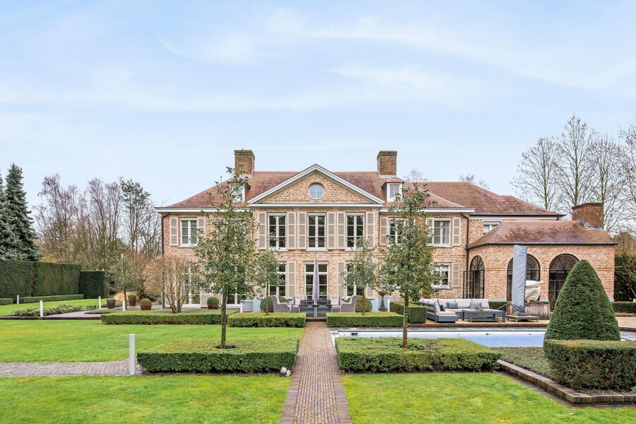 Magnifiek aangelegde parktuin rondom de woning voorzien van verwarmd buitenzwembad, poolhouse (met relaxruimte, sauna, douche, bidet, toilet) en orangerie met buitenkeuken en ensuite een bijkomende garage voor 2 wagens.