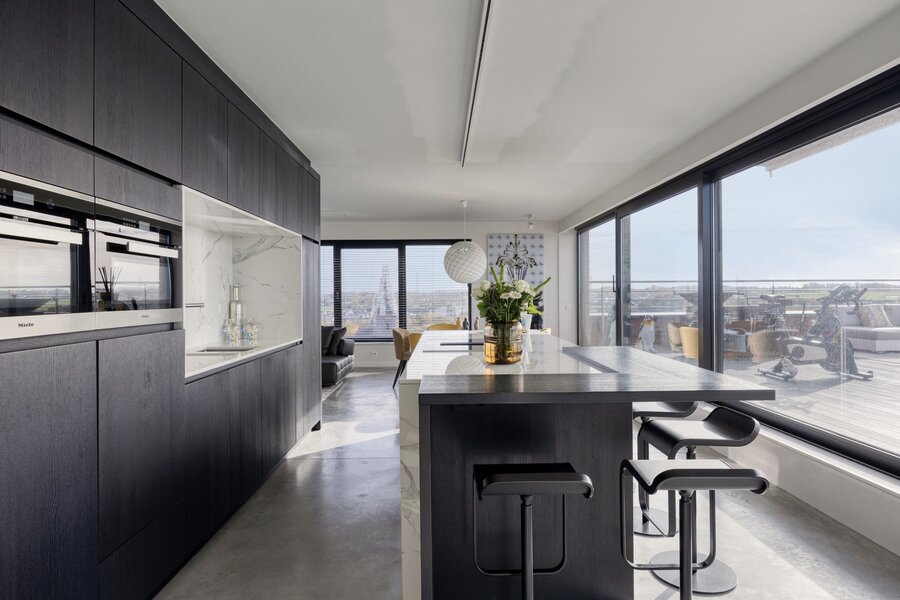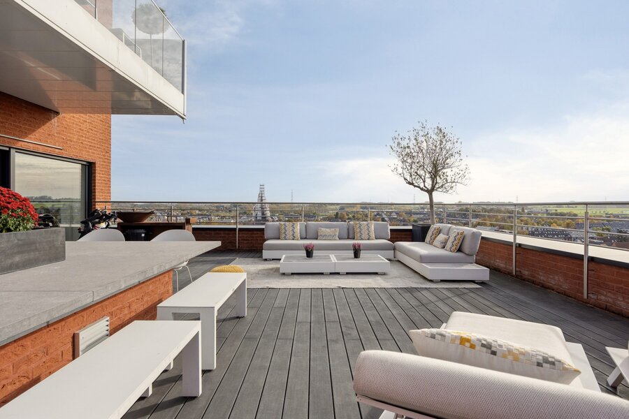 In the prestigious Martinas project, where the historic Merchtem brewery was transformed into a luxurious residential setting, you’ll find this exceptional penthouse on the tenth floor. As the only apartment on this level, it offers complete peace, privacy, and breathtaking panoramic views.