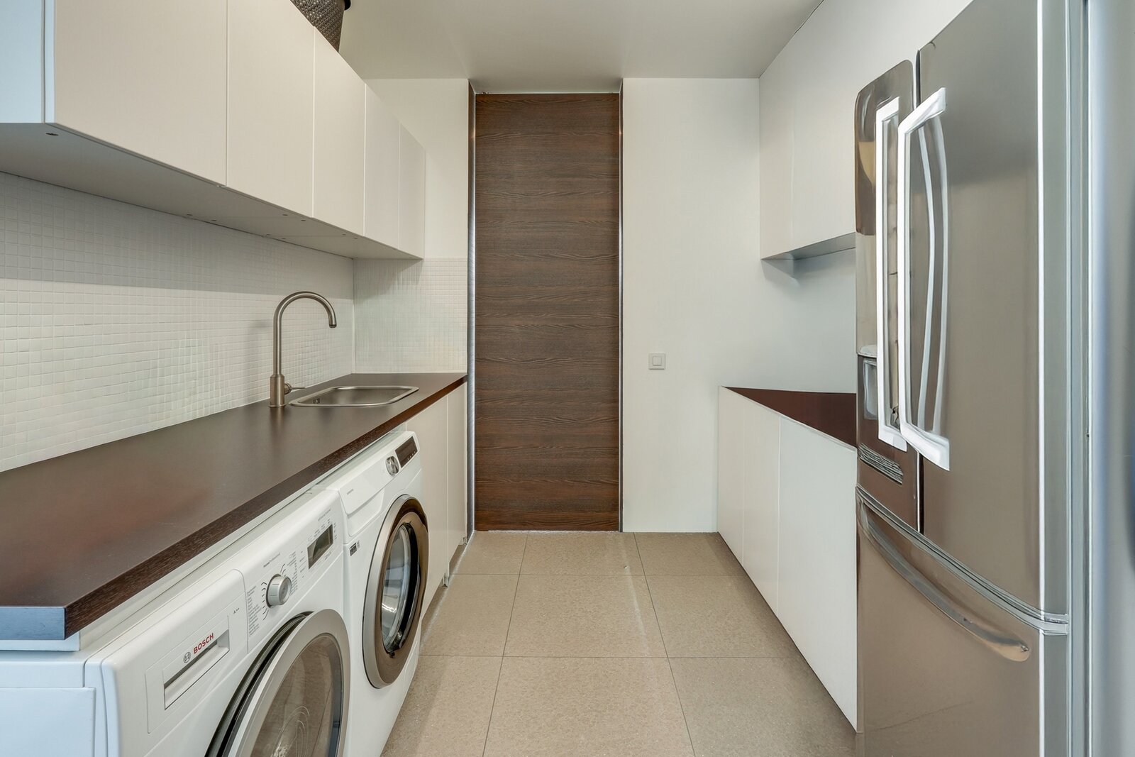 The property welcomes you with a modern, fully equipped kitchen featuring an elegant natural stone island, ideal for those who enjoy cooking and social gatherings. The living room, finished with warm parquet flooring and a gas fireplace, radiates comfort and atmosphere. Large windows provide abundant natural light and a seamless connection to the garden.