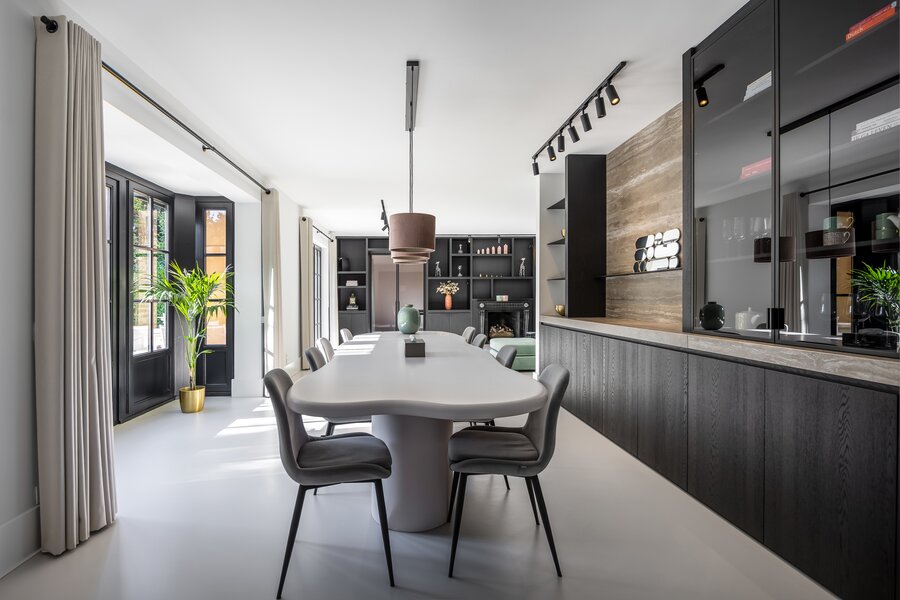 De luxueuze leefkeuken met kookeiland en 4 zitplaatsen is volledig uitgerust met topapparatuur van Miele, Bora en Selsiuz kraan. Aansluitend vindt u een praktische bijkeuken, kelder en toegang tot de overkapping met open haard en heater – ideaal voor zowel dagelijks comfort als exclusieve ontvangsten. Aansluitend het riante terras met zwembad – dit geeft het ultieme vakantiegevoel.