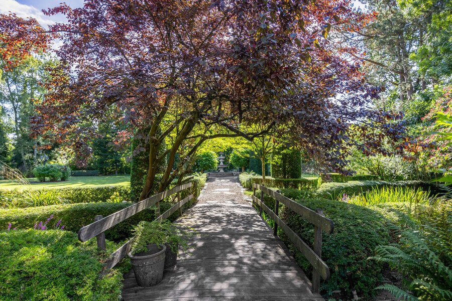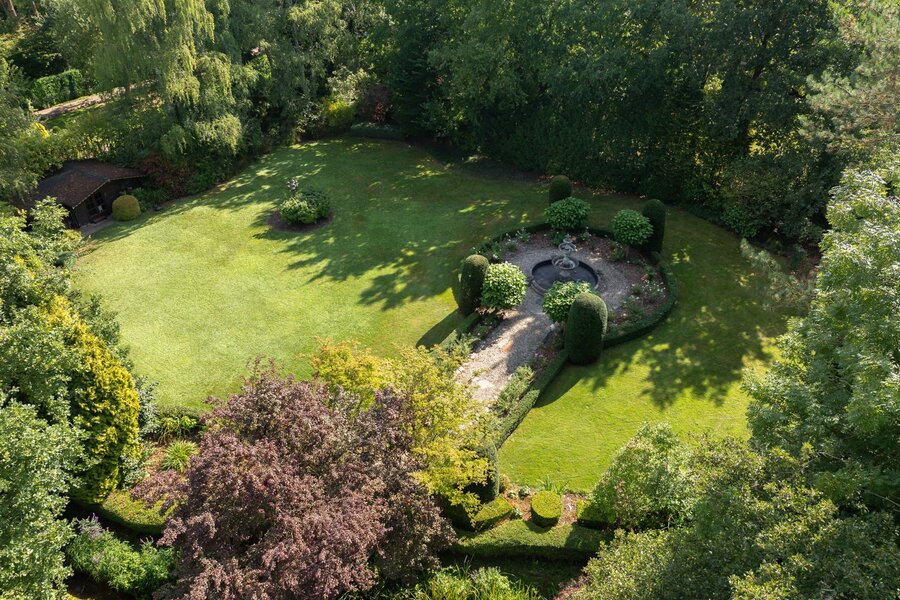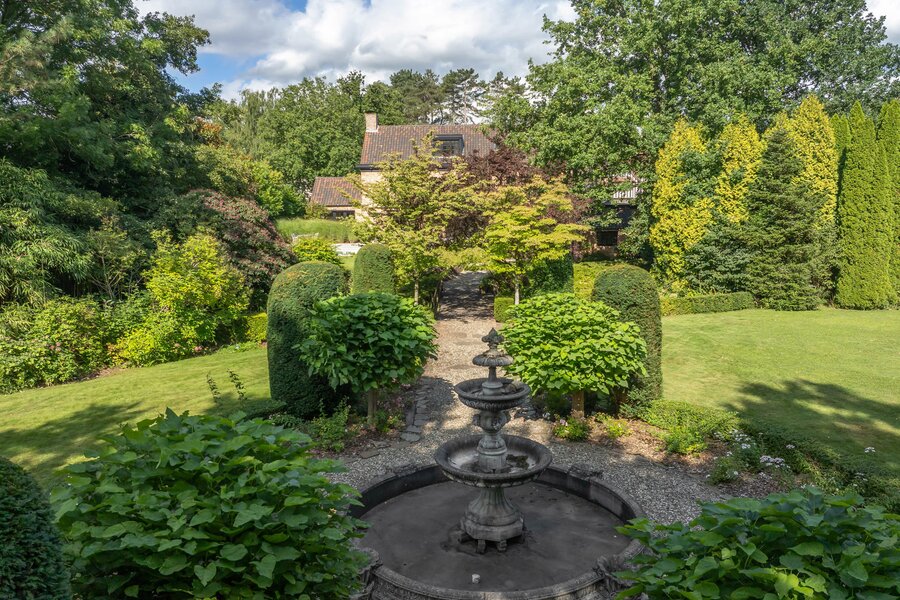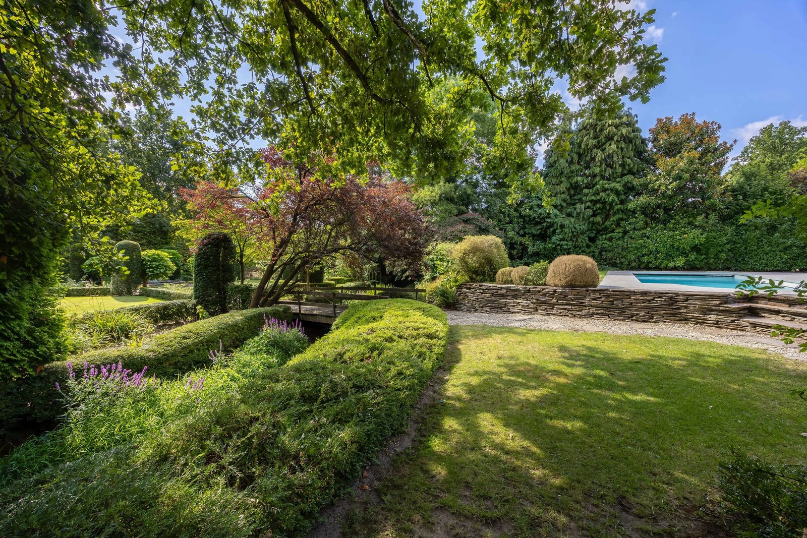 De fraai aangelegde tuin is een oase van rust en voelt aan als uw eigen park. De tuin heeft onder meer een verwarmd zwembad, design buitendouche, tuinhuis, beregeningssysteem en een indrukwekkende fontein. Dankzij de natuurlijke waterloop "Zwanenbeek" vormt dit domein een uitzonderlijke buitenbeleving.