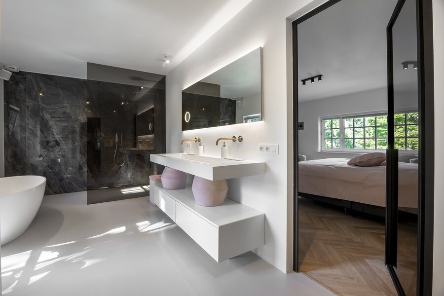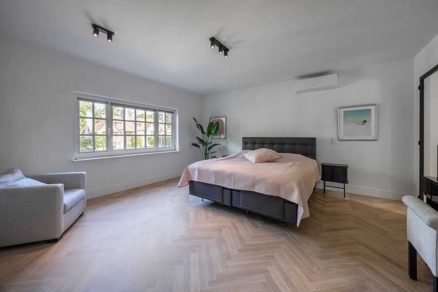 Op de tweede verdieping bevinden zich twee royale kamers en wederom een luxe badkamer.