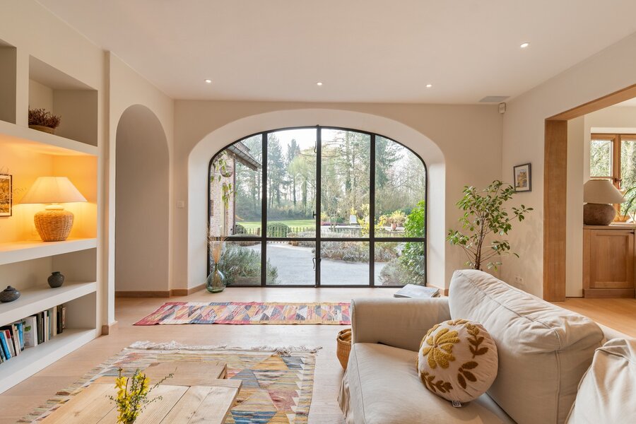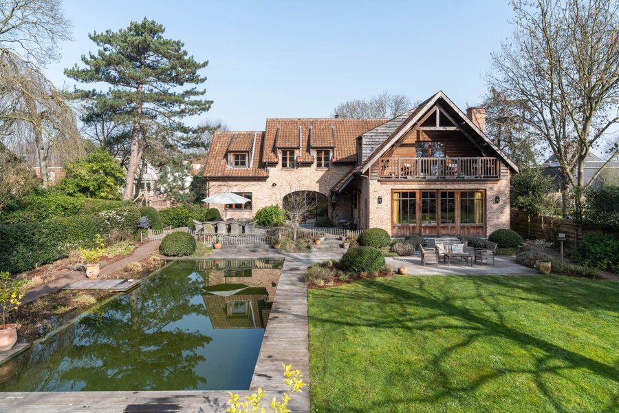 Midden in het groen en in volledige privacy ontvouwt zich deze landelijke charmevilla op een royaal perceel van 5.850 m² waar rust, privacy en buitenbeleving de toon zetten. De architectuur ademt authenticiteit met warme baksteen, houten accenten en verfijnde detaillering terwijl grote raampartijen het huis naadloos verbinden met de volledig aangelegde tuin en de natuurlijke zwemvijver. Met circa 362 m² bruikbare vloeroppervlakte biedt deze woning een uitzonderlijk gevoel van ruimte voor wie stijlvol wil wonen in harmonie met de natuur.