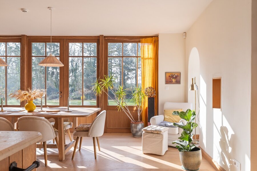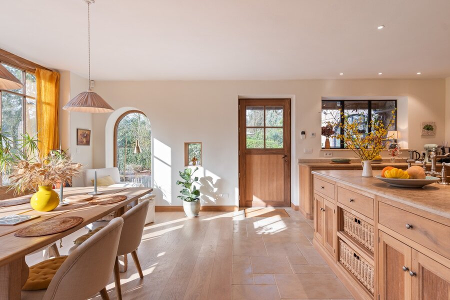 Doorheen de woning is gekozen voor uitmuntende materialen en een hoogwaardige afwerking die tijdloosheid en duurzaamheid combineren. De ecologische bouwfilosofie vertaalt zich onder meer in het gebruik van ecologische verf, natuurlijke vloerisolatie met kurk, de muurisolatie met houtvezel, een aangenaam binnenklimaat dankzij vloerverwarming en een doordacht domoticasysteem dat comfort, veiligheid en energiebeheer naar een hoger niveau tilt.