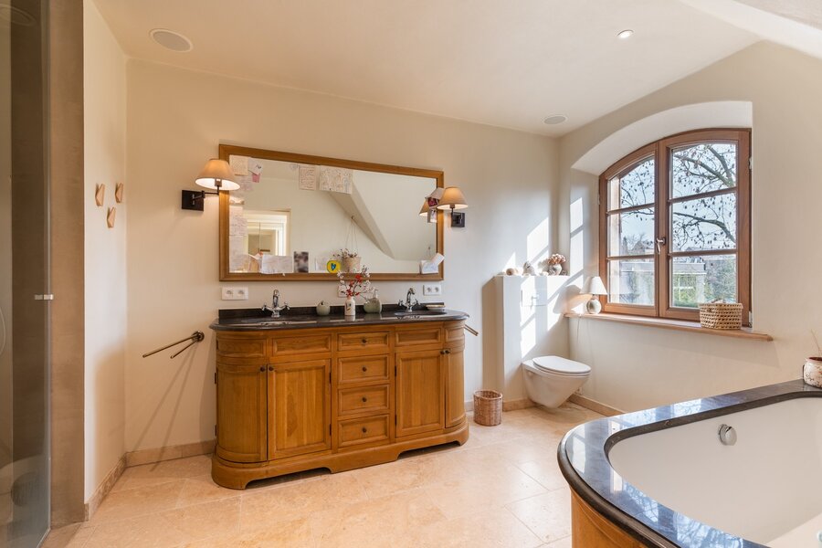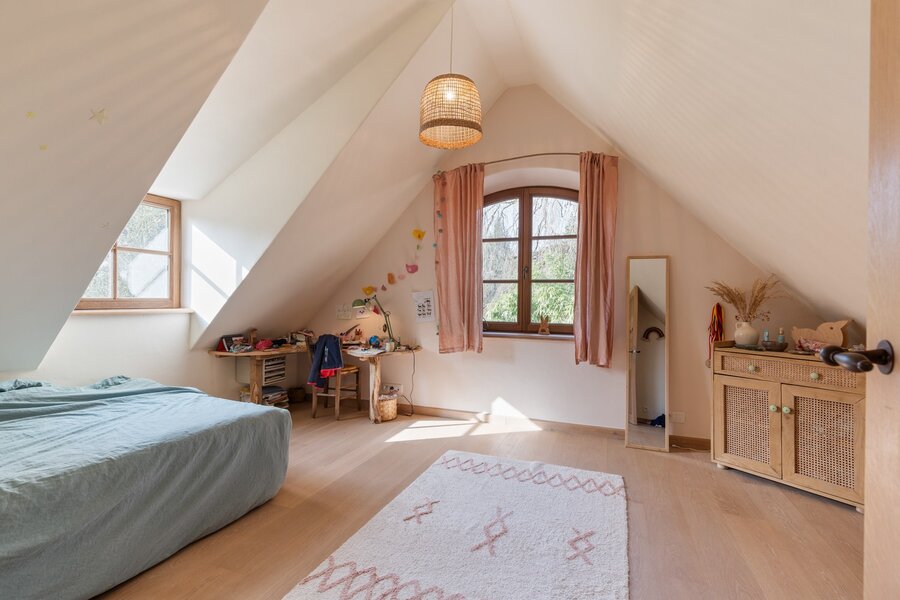 Op de bovenverdieping wachten vier volwaardige slaapkamers die elk rust en privacy bieden en twee badkamers die het dagelijkse ritme moeiteloos ondersteunen. De mastersuite is tevens voorzien van een dressing en zonnig terras met zicht op de tuin.