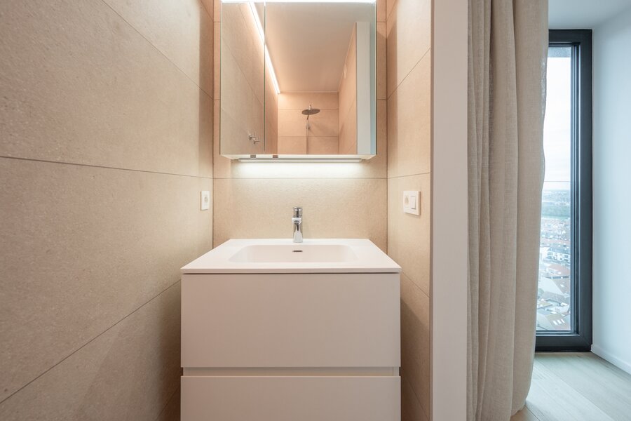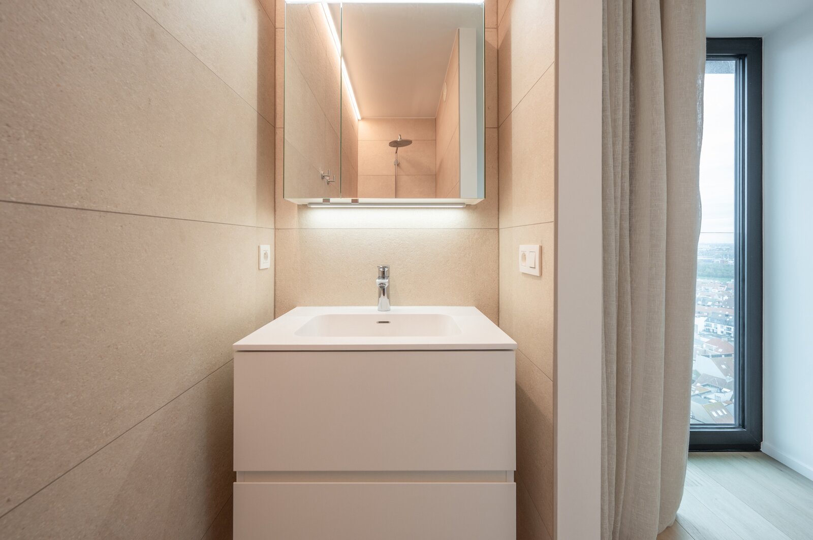 This duplex is part of the prestigious Heldentoren, an architectural landmark designed by Neutelings Riedijk Architects and developed by SALT and DVLP. Its nomination for the Belgian Construction Awards 2025 confirms the exceptional character and architectural refinement of the project.