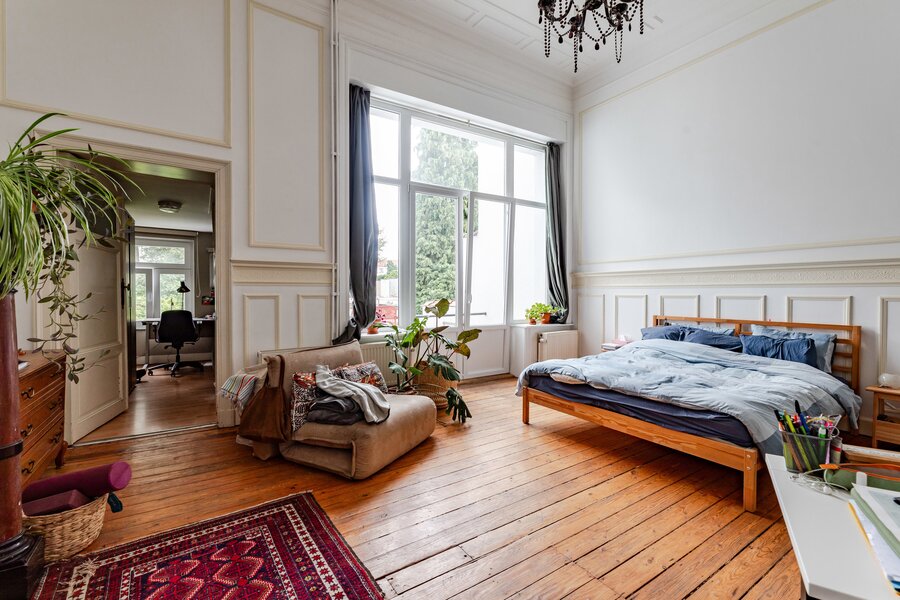 In a pretty tree-lined avenue in Etterbeek, a short walk from the Cinquantenaire Park, a beautiful house currently divided into three flats, including a duplex and an office on the ground floor. Beautiful garden. Land area +/- 250 m². Area +/- 430 m². Ground floor +/- 100 m²: office - 1st floor +/-95 m² (1 bedroom, bathroom), 2nd floor +/- 82 m² (1 bedroom, bathroom), 3rd and 4th floors in duplex +/- 101 m² (3 bedrooms, bathroom). Peb E+
