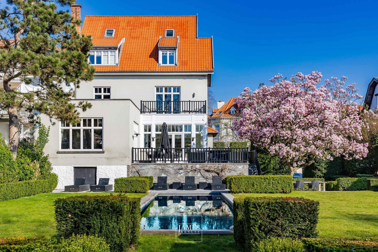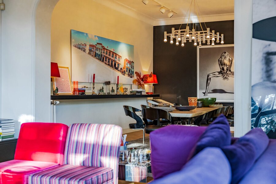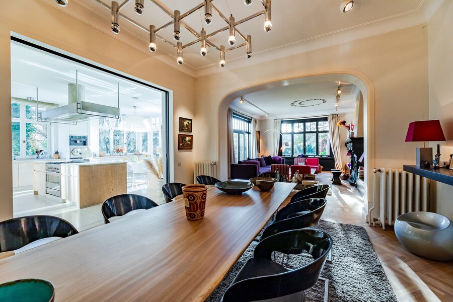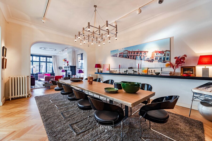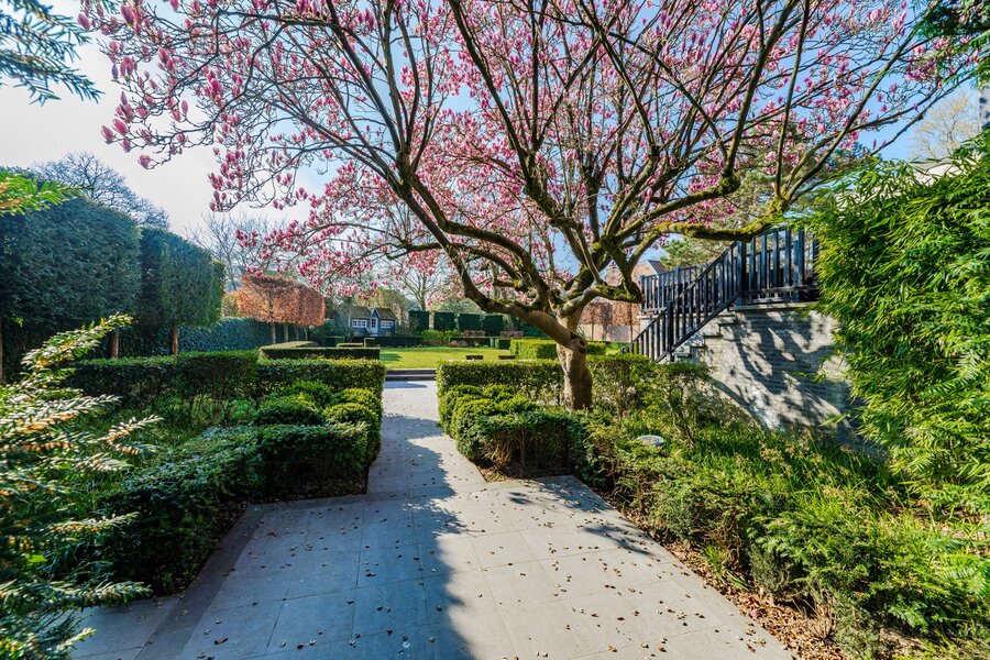 Located in one of Uccle's most sought-after residential neighborhoods, this elegant character property is set on a plot of nearly 1,500 m², featuring a south-facing landscaped garden designed by Wirtz. Sheltered from view, the mature garden also offers a beautiful swimming pool.