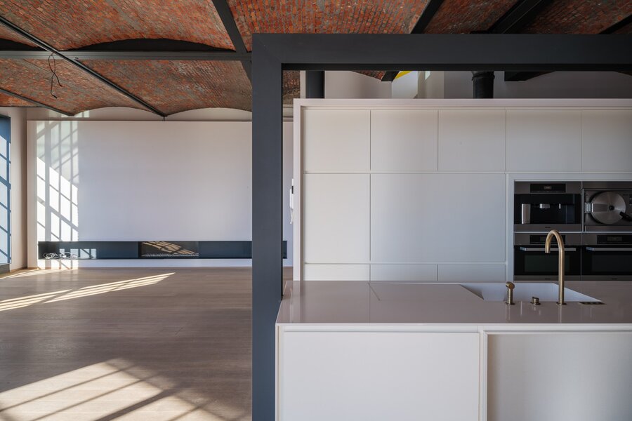 The industrial character — with its clean lines and pure materials — receives a refined, contemporary interpretation here.