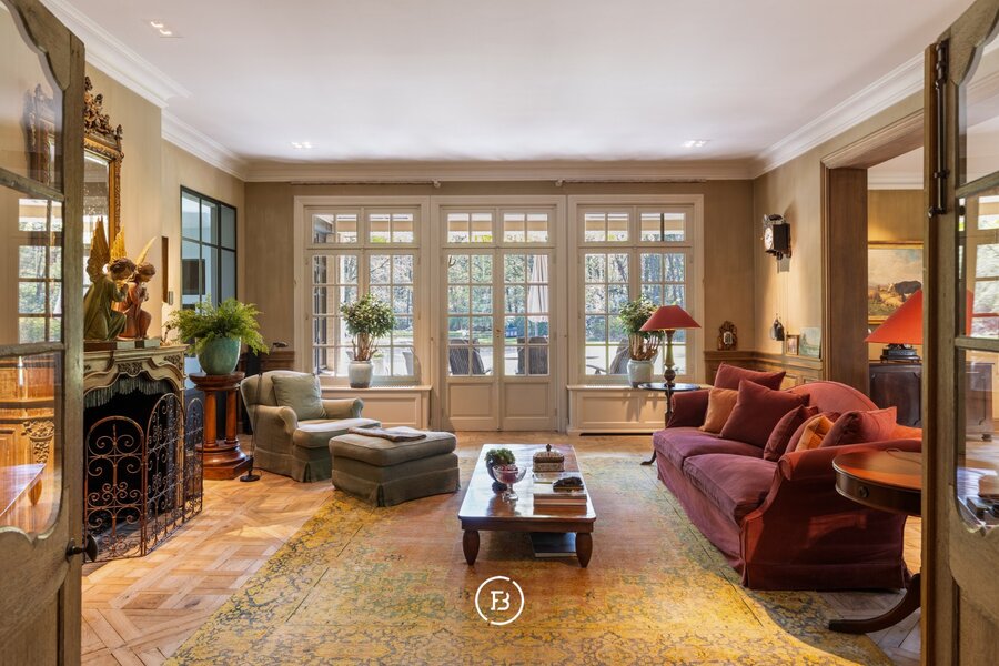 De villa verwelkomt u met royale en sfeervolle leefruimtes, elk met een eigen karakter en een prachtig uitzicht op het omliggende domein. De verschillende salons, eetruimtes en keuken vormen een harmonieus geheel, aangevuld met onder meer een bibliotheek en ontspanningsruimtes. Op de verdiepingen bevinden zich meerdere slaapkamers met en-suite badkamers, waaronder een master suite met dressing en terras.