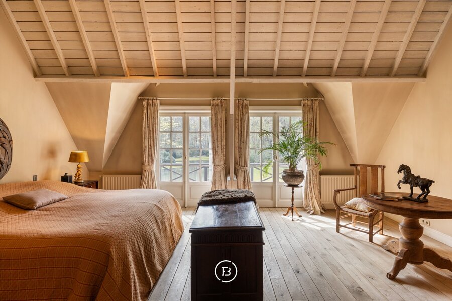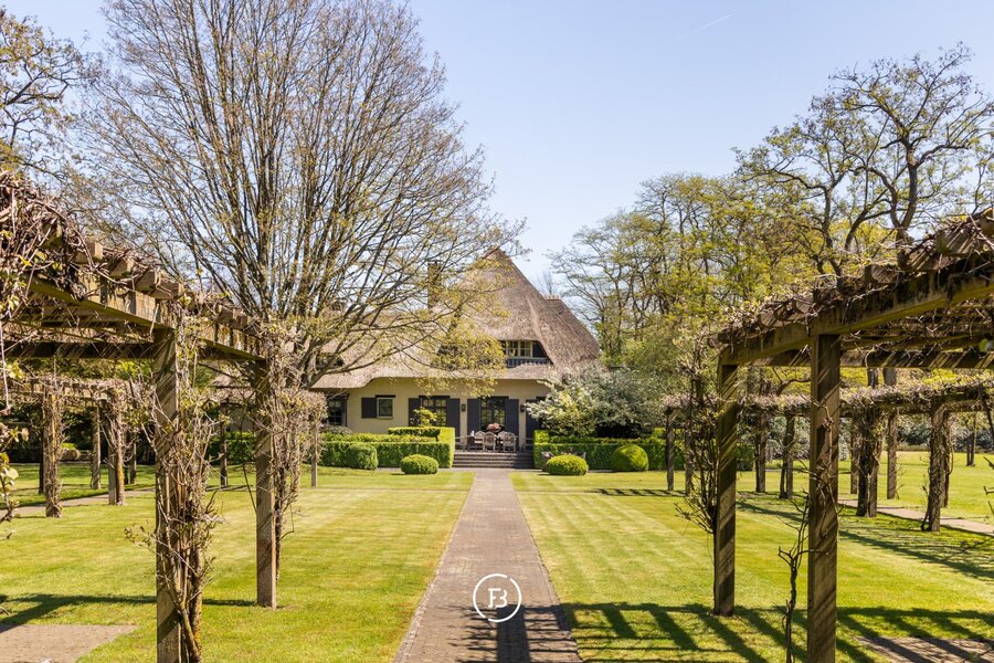 In een oase van rust en groen bevindt zich dit indrukwekkende landgoed, waar privacy, natuur en verfijning naadloos samenkomen. Een zeldzame plek waar u volledig kan onthaasten, midden in een zorgvuldig gecreëerd landschap.