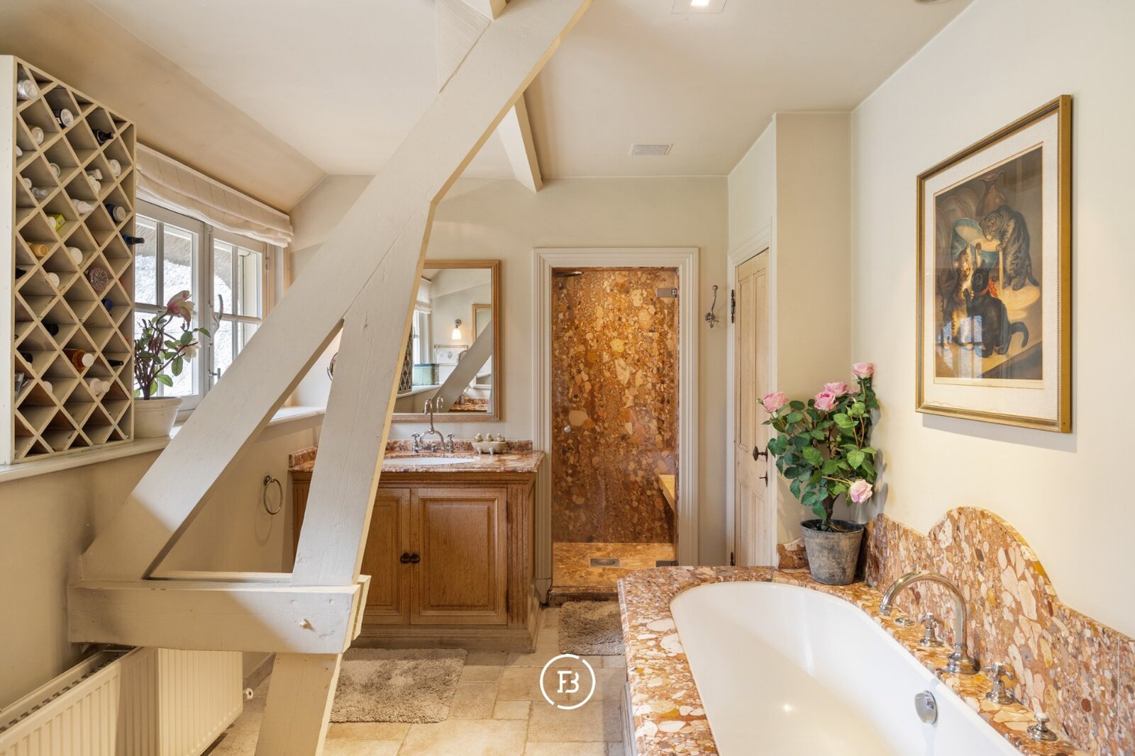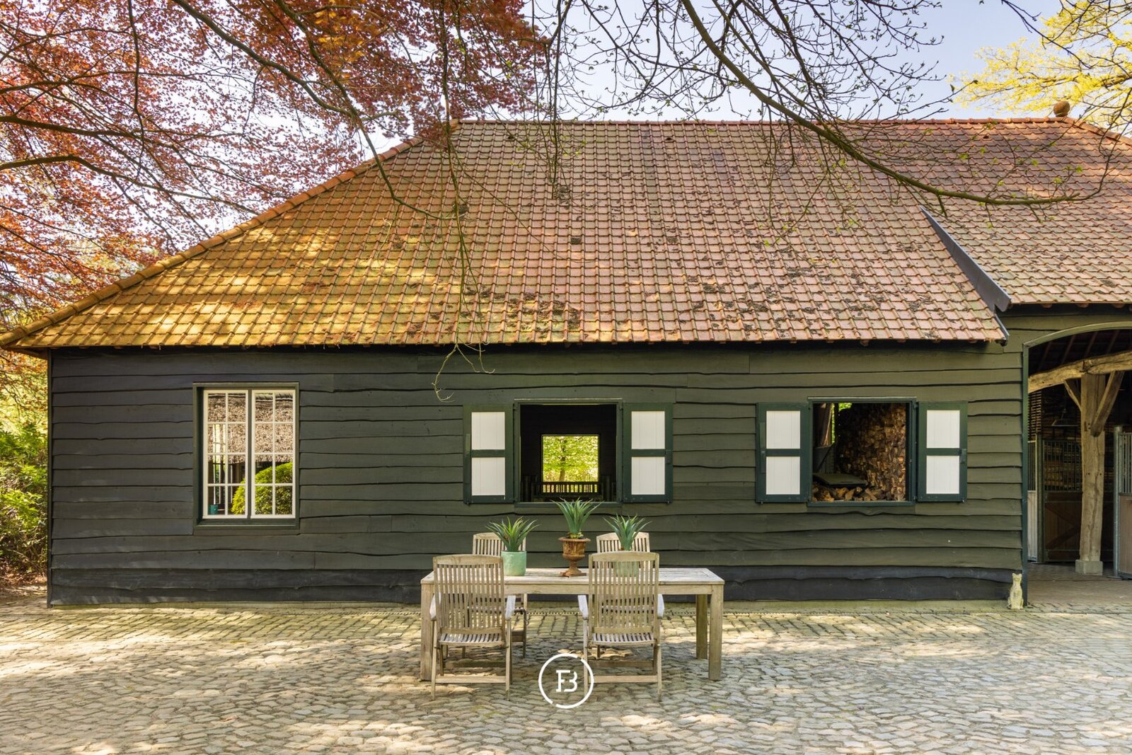 Het domein werd ontworpen door Jacques Wirtz en het interieur werd vormgegeven door Axel Vervoordt. Het geheel omvat een rietgedekte hoofdvilla, een authentiek posthuis, een conciërgerie en bijgebouwen met onder meer paardenstallen. Elk gebouw werd grondig gerenoveerd met oog voor detail en afgewerkt met hoogwaardige materialen, wat resulteert in een unieke balans tussen tijdloze charme en hedendaags wooncomfort.