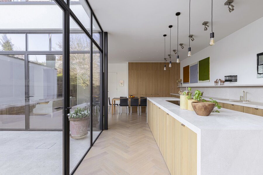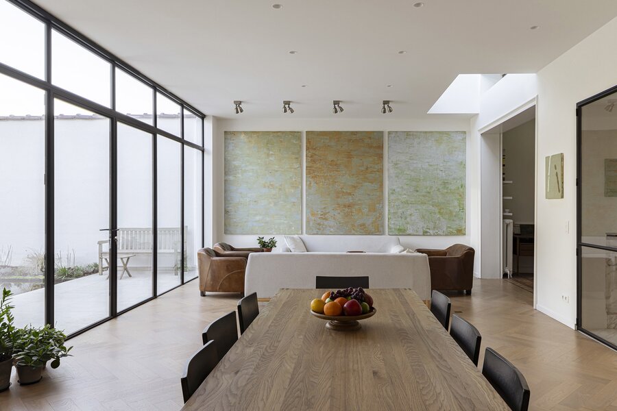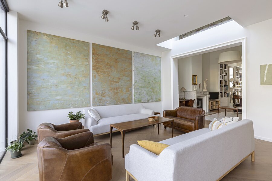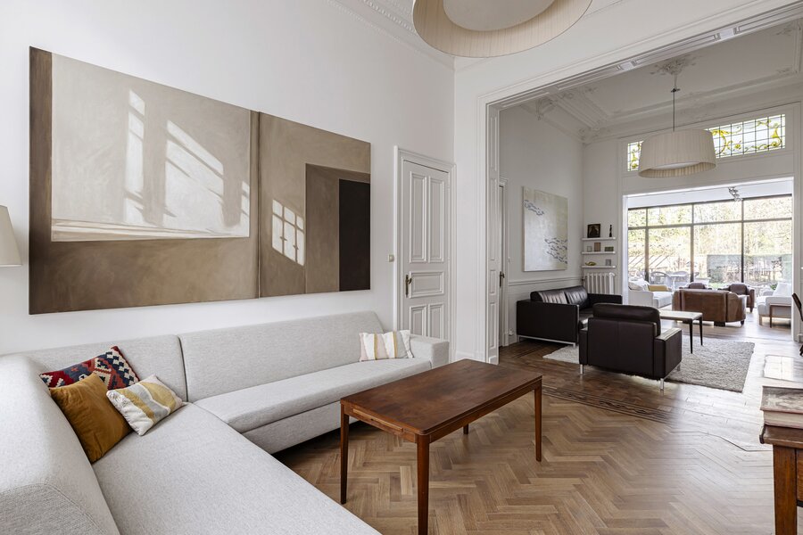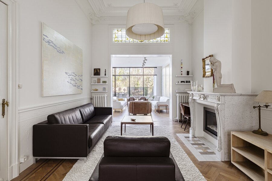 Charming 1920s residence on a plot of approximately 476 m², offering around 516 m² of living space. Built in characteristic brickwork and enhanced with Art Nouveau-inspired sgraffito panels, this artist’s home exudes authentic charm, combining generous volumes with a bright and inspiring living environment.
