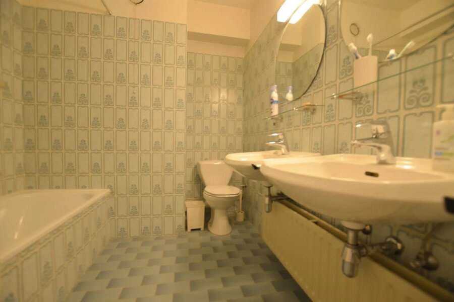 Tweede en derde ruime slaapkamer achteraan, aparte badkamer met ligbad, toilet en 2 lavabo's.