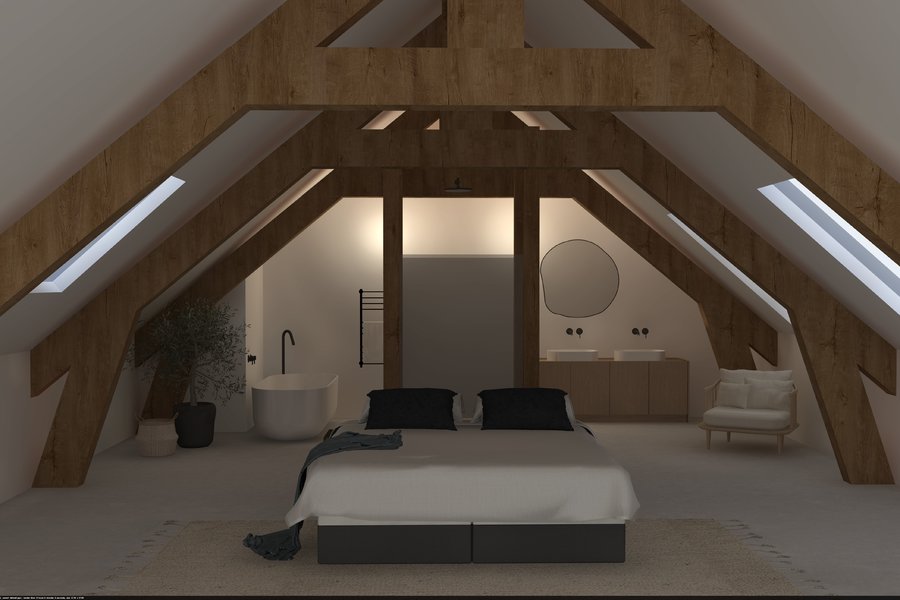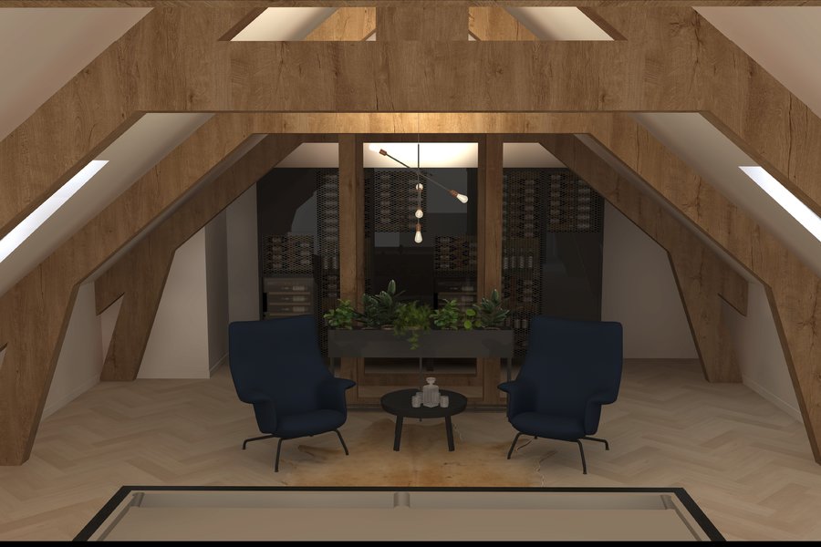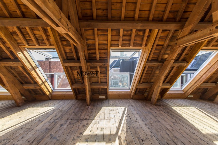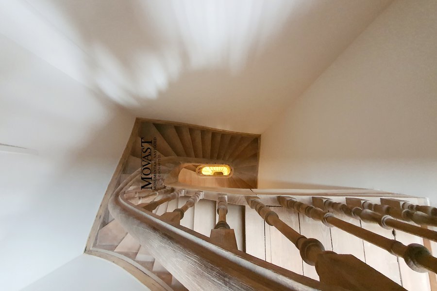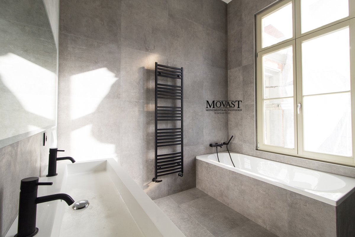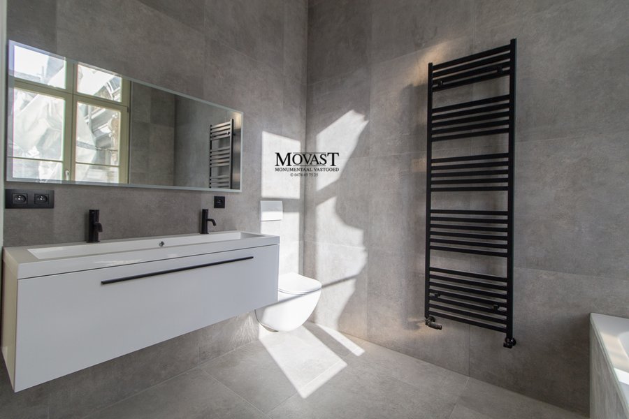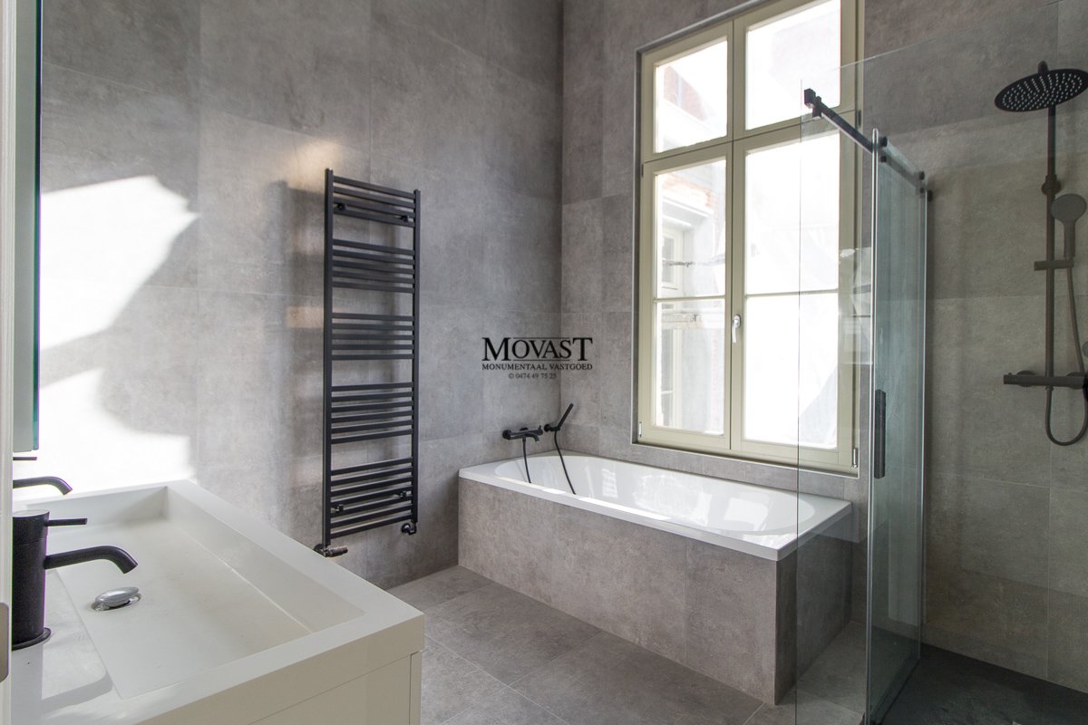 We komen binnen in de ruime inkomhal met vestiaire, we nemen de lift of de mooi gerestaureerde trap naar de eerste verdieping, hier is een apart gastentoilet, via de dubbele deuren betreden we de imposante (leef)ruimte met een prachtige natuurlijke lichtinval. Op dit verdiep is er nog een slaapkamer met en suite een badkamer met ligbad, inloopdouche, meubel met dubbele lavabo en een toilet. We nemen de lift een verdiep hoger, hier komen we in een open ruimte waar u een prachtig uitzicht op de (leef)ruimte. Nog een verdiep hoger komen we in de bovenste verdieping van dit prachtige object: een multifunctionele ruimte met een warme look dankzij de prachtige gerestaureerde houtconstructie.