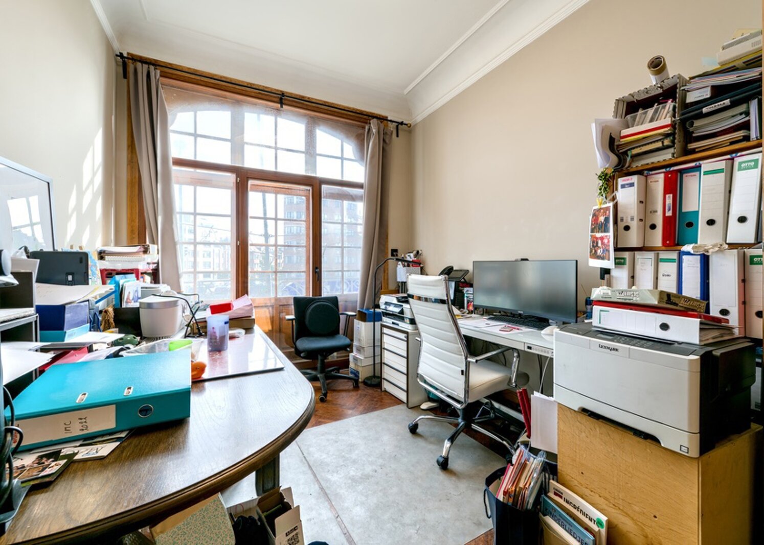 With a lovely ten-metre-wide facade, it has four storeys and spacious, light-filled rooms adorned with beautiful original woodwork. The upper floors feature spacious reception rooms, six bedrooms, three shower rooms and four offices, served by two independent stairwells. This configuration offers the possibility of modifying it into several mixed units.